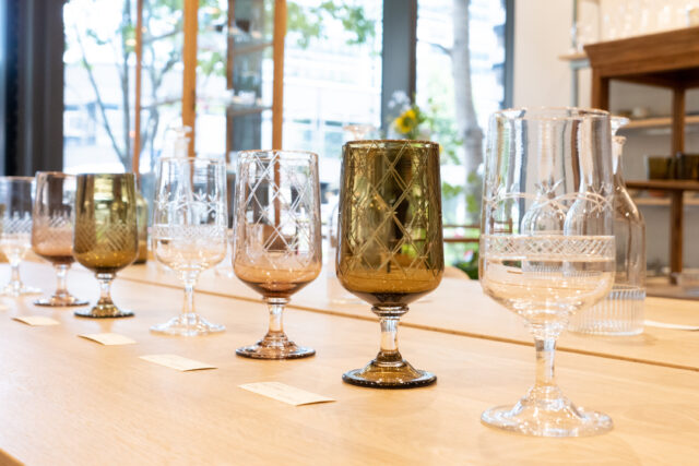 A gentle expression can be found on the surface of the cut glass works by glass artisan, Mr. Haruya Hiroshima. The refined skills and gentle demeanor of the artisan result in works that expresses a quiet finesse.