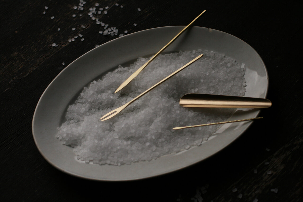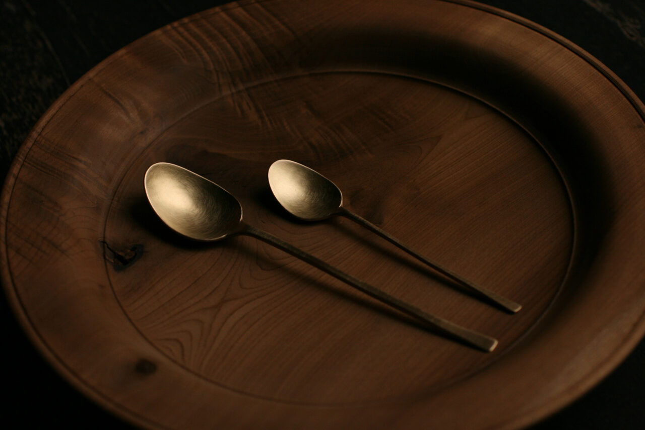 The traces of handwork that remain on each piece of cutlery reveal the artist’s sincere approach to his craft. It is a luxury to have such a beautiful piece to use in one’s daily life: the gentle touch of brass, its color deepening with time, emits a quiet light and reminds us of the accumulating preciousness of our day to day life.