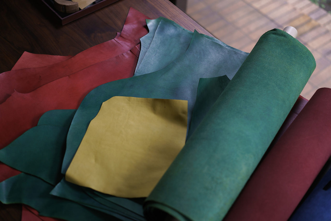 Mr. Harada works on natural dyeing using madder and a type of grass called kariyasu as well as indigo. He has a strong resolve to reflect natural hues on leather. He also incorporates a Japanese traditional dyeing technique called “katazome” (a kind of resist dyeing) used for kimono fabric into his leather dyeing. With his insatiable appetite for challenges and new expressions, his brand captures customers’ hearts. The word “enku” means “link” and “sky” in Japanese which conjures an image of boundless expansion. Being true to its name, the brand keeps on evolving, being cherished without boundary and timelessly.