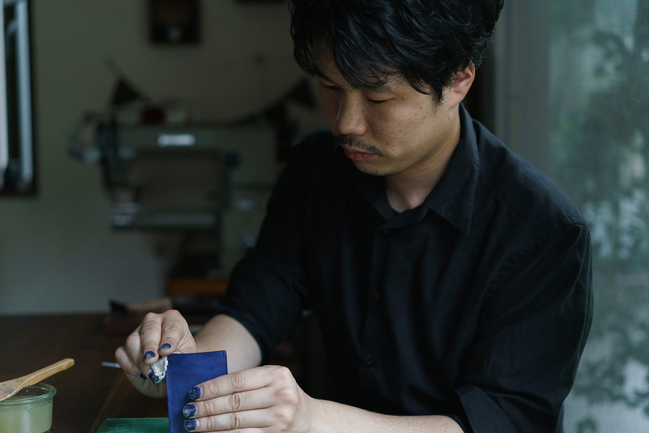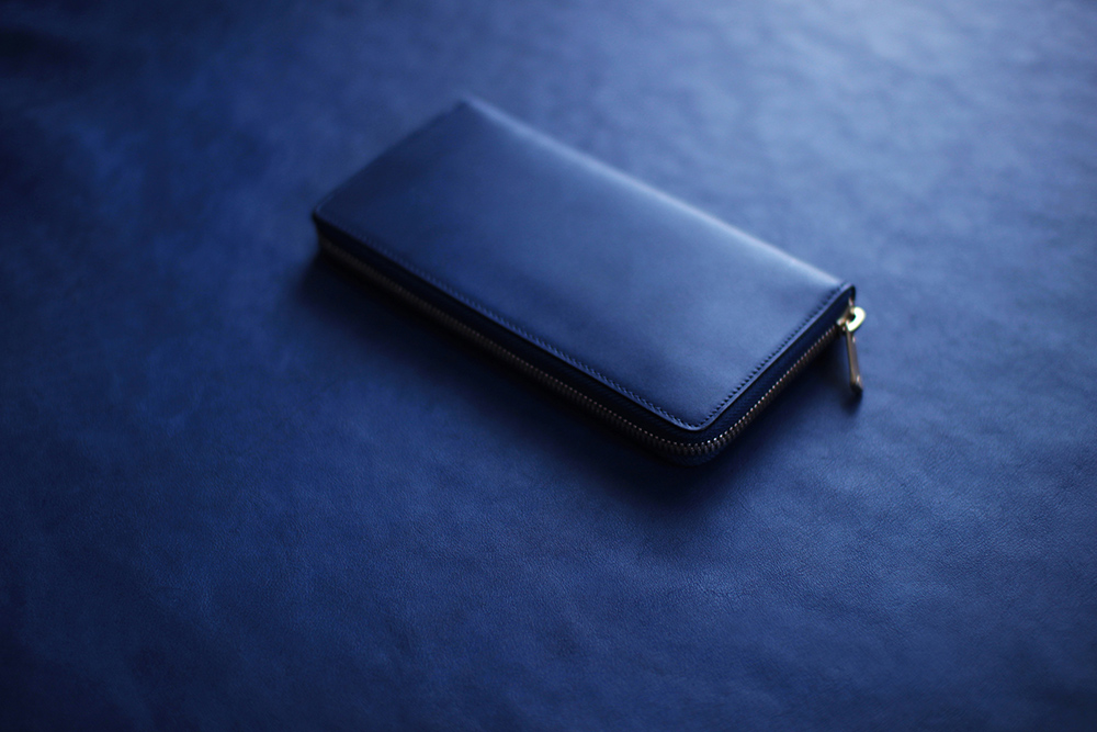 “enku” is a brand for Japanese indigo dyed leather founded in 2013 by Mr. Kenichi Harada who is a Tokyo-based leather and dye artisan. Japanese indigo dye is also called “Japan blue” and its beauty is attracting many fans overseas. However, dyeing leather is still uncommon because of the technical difficulties. Through repeated trial and error along with extensive studies on the materials, Mr. Harada was finally able to find his original process for dyeing. The products of “enku” are all handmade using natural dyes. The texture of the leather and hue which is vibrant yet deep, show the uniqueness of this brand. Another key feature of the brand is the simple and timeless design of the products making them suitable for long term usage.