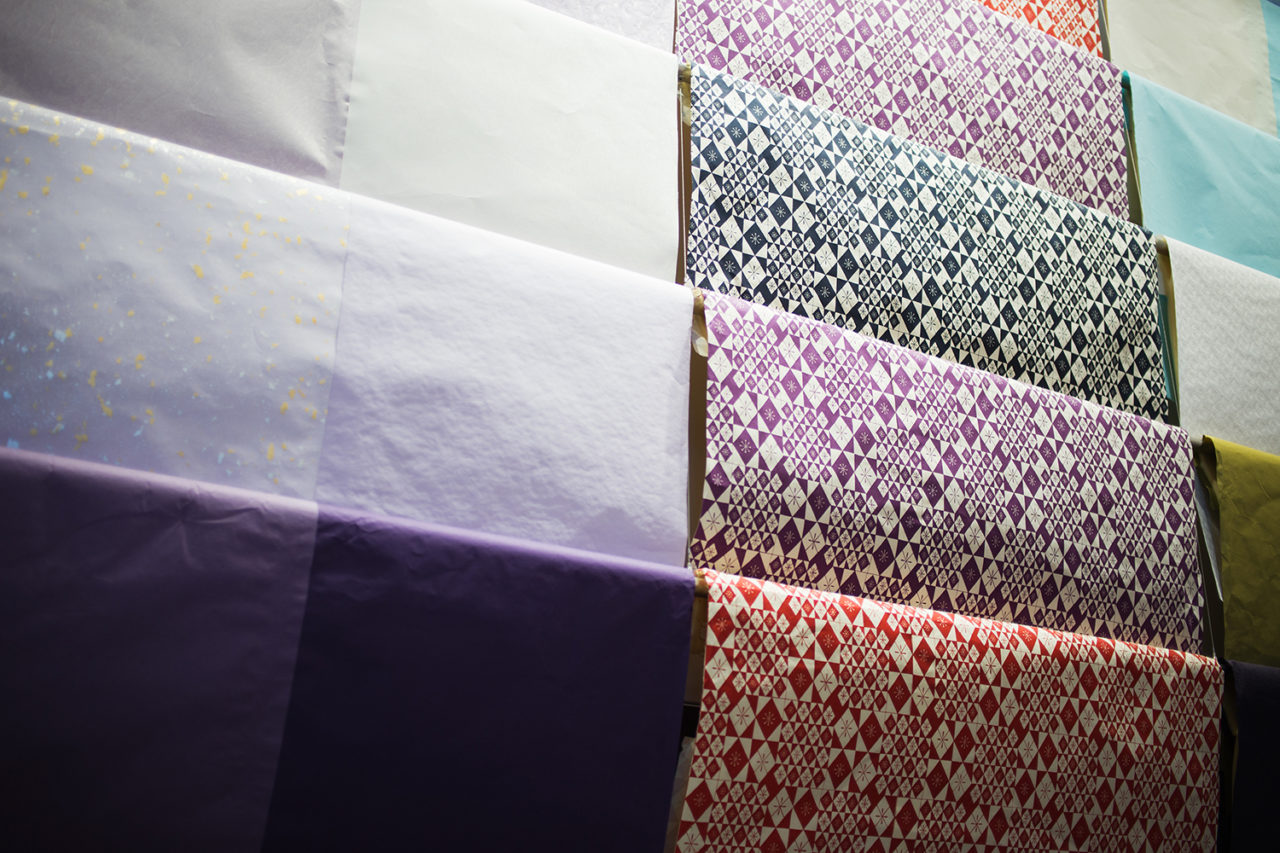 Haibara is committed to woodblock printing over the long term. Woodblock printing is created by pressing Japanese paper against an inked wood block that has imagery carved into it. Since its founding till modern times, woodblock printed paper stationeries in vivid colors have featured prominently in Haibara’s product line-up. Also, the company has a large stored archive of a type of Japanese paper called “chiyogami”. These papers were designed by outstanding artists from the Meiji period to the Showa period. Haibara has started to reprint them in recent years.