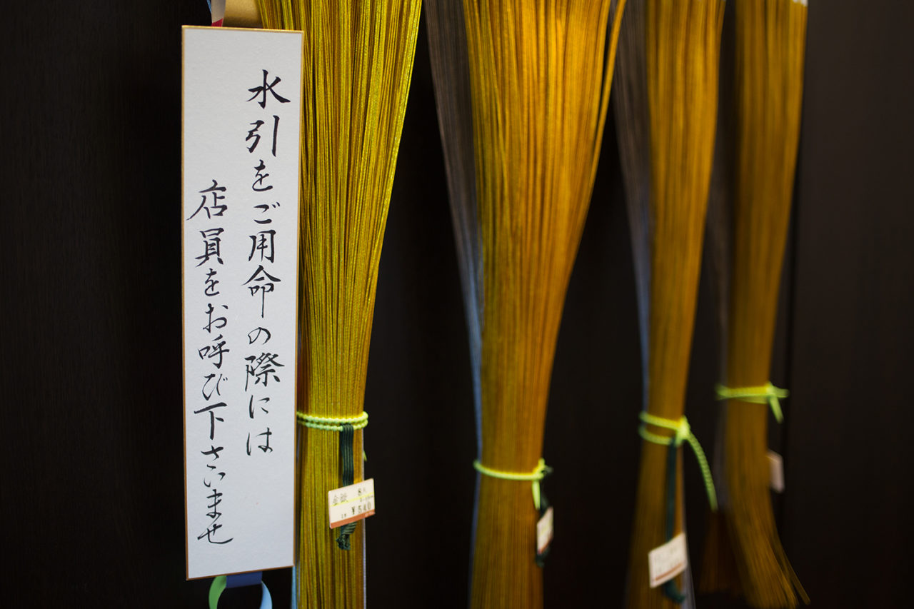 Currently, Haibara is run by Mr. Tatsuo Nakamura, the seventh generation head who is responsible for the management of the company. He has continued on his efforts to go back to basics and this include the revival of the original patterns of Haibara. In 2016, their flagship shop in Nihonbashi won the Good Design Award. In the shop they tie “Mizuhiki” or put “Noshi” on gifts according to the occasion, conveying the courtesy and manners of Japan. Haibara continues to propose “living with Japanese paper” to their customers.