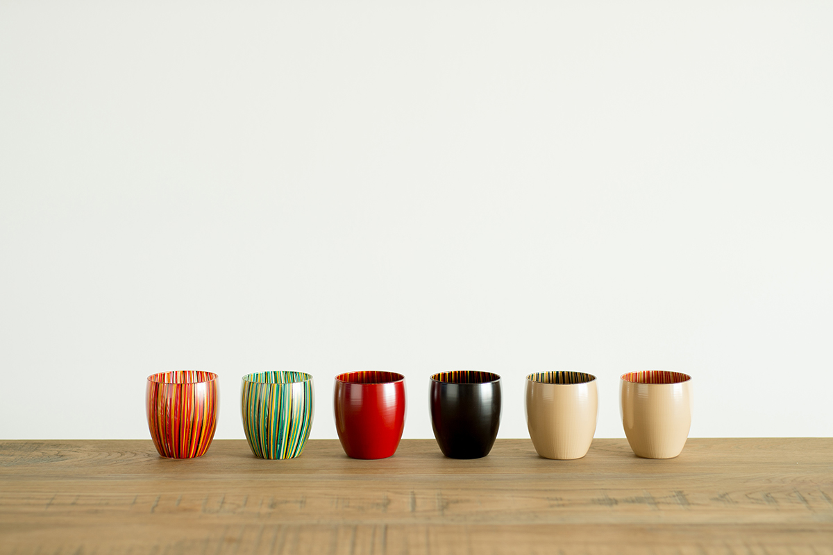 Urushi-glass uniquely expresses the beautiful colors of lacquer which can be seen through the transparent glass. Maruyoshi Kosaka created their own colors and carefully paints them on the glass with a brush one line at a time. Deep concentration is needed for this technique and the glassware with the elaborate hand painted decoration shows the elegance. Also, compared to wooden lacquerware that requires delicate care, urushi-glass is robust and suitable for daily use as it can be used with metal cutlery.