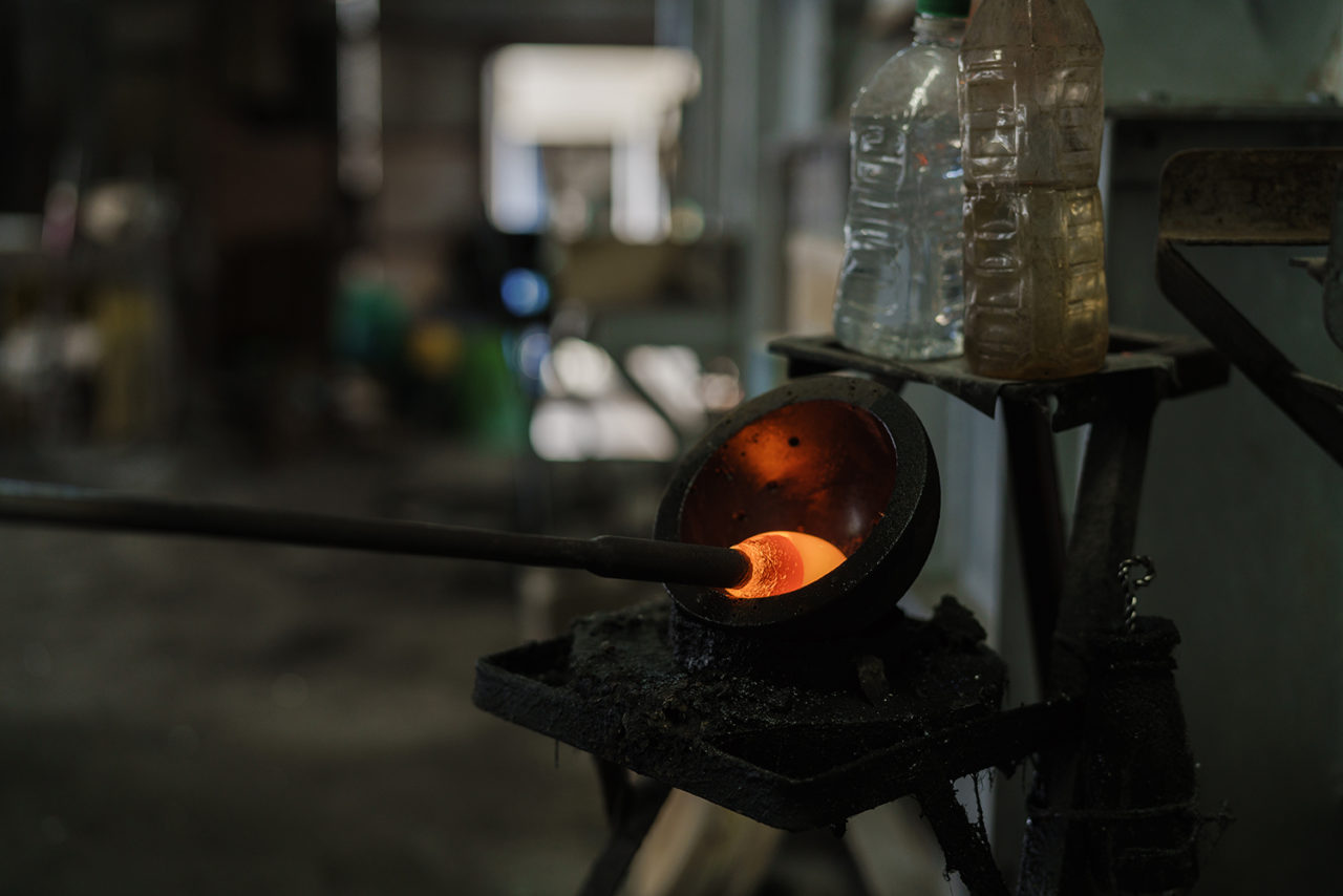 Soejima Glassware originated from Saga clan research laboratory where a glass kiln was set up to produce glass in the middle of the 19th century in Saga Prefecture. Founded in 1903, Soejima Glassware Co., Ltd. is the only manufacture that inherited the techniques and the tradition of Saga Glass. In the beginning, they produced mainly practical items such as dispensing bottles and lamp shades. However, with the changing times, a wave of mechanization took over the industry. It was during this period, that they shifted their business to production of craft products in order to preserve their hand-blown techniques which have been cultivated over the years. It was around 1970, when the current president Mr. Taro Soejima took over the company. He is an artist and he continued his pursuit in making art objects even while he is managing the company. Since then, their product came to be known as “Hizen Vidro”.