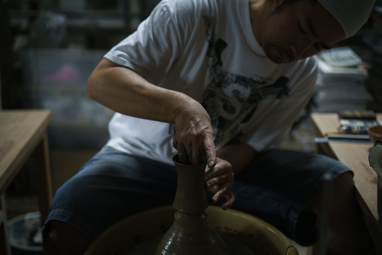 As a pioneer of tableware for fine Japanese cuisine, Tokko Kiln Co.,Ltd has been producing high-quality tableware for professional use. Their excellent transfer technology makes it possible to produce wares with delicate patterns of good quality consistently. Elegant tableware decorated in gold and silver glaze can also match a wider range of professional needs. On the other hand, the president’s younger brother Mr. Eijiro Tokunaga creates earthenware. After training in pottery making for 10-years in Kyoto, he came back to his hometown to succeed the family business in a porcelain dominated Arita. The challenges of working beyond the boundaries of porcelain creates many new possibilities while still being deeply rooted to Arita.