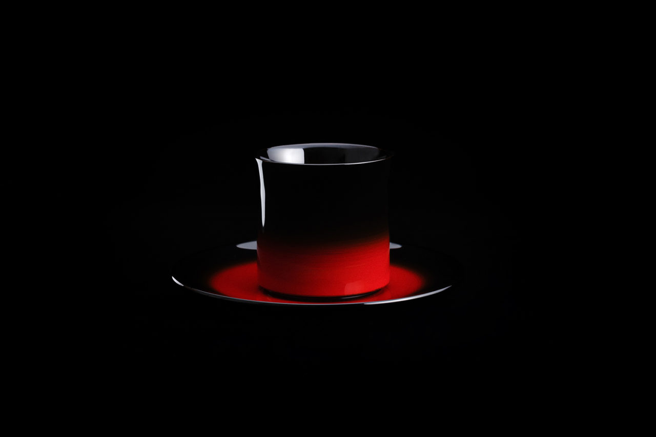 A coffee cup and saucer which are coated with many layers of lacquer from Wajima. The luster and superb gradation from vermillion to black is beautiful beyond words. Have an enriching coffee break with this set where the outstanding skills of a traditional “nushiya” shines through. Nushiya is a vendor cum manufacturer of Wajima lacquerware.