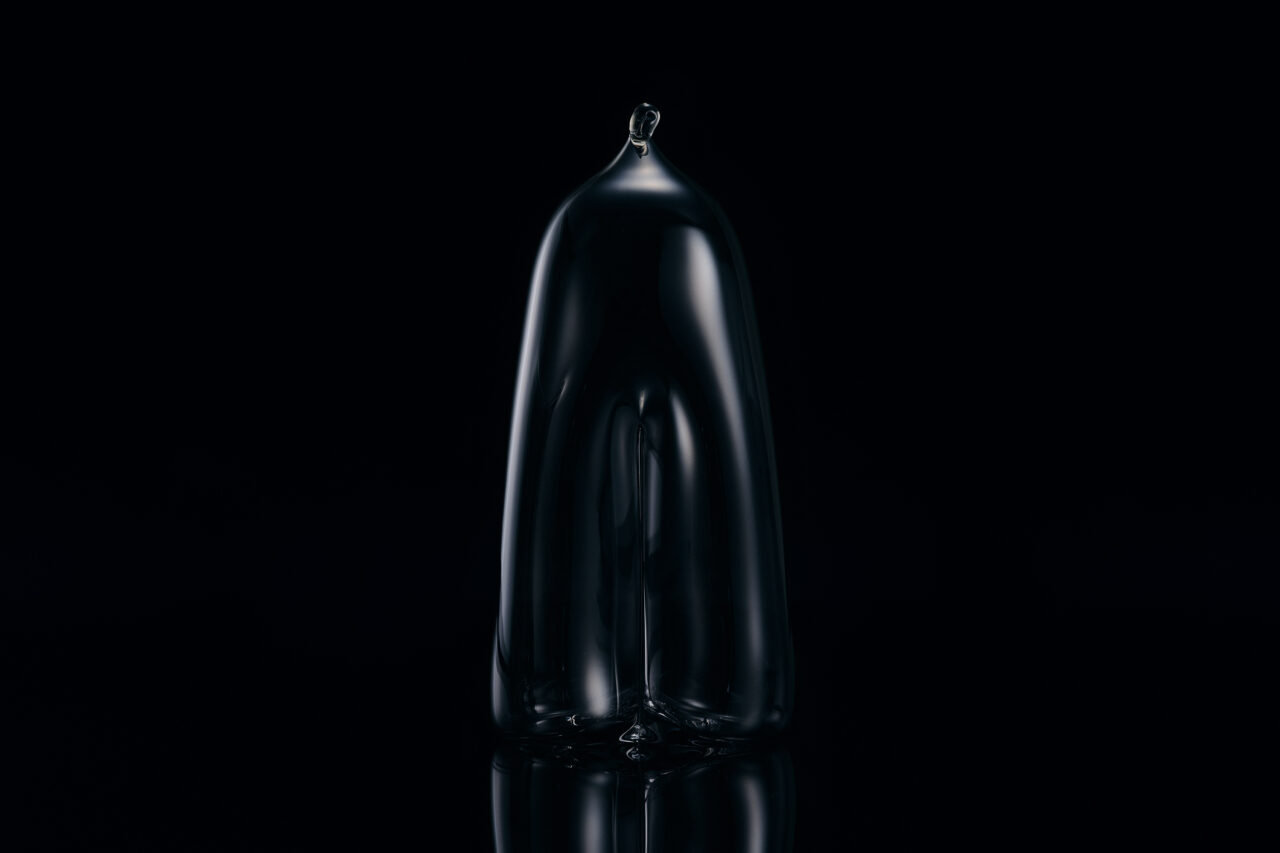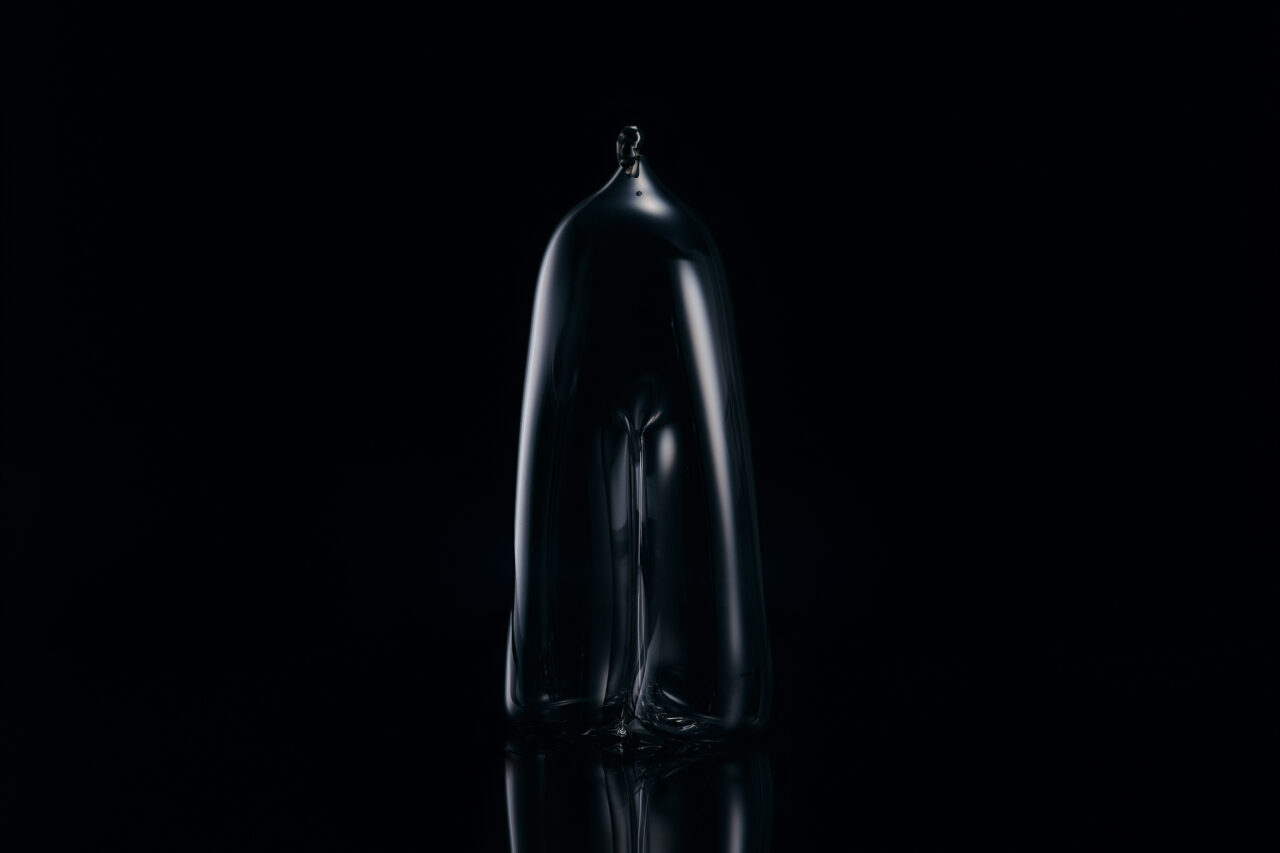Glass is, by its nature, a hard material. Yet this figure appears as though it has retained the softness of molten glass in the very act of being shaped. Holding such two opposing qualities at once is a hallmark of Takeyoshi Matsui’s work. The subdued tones of the glass, together with the way light passes through it and its subtle variations in thickness, gently reflect the surrounding air and the flow of time. Through this piece, the artist evokes the ambiguous presence of a “person,” using a form that deliberately avoids excessive explanation.