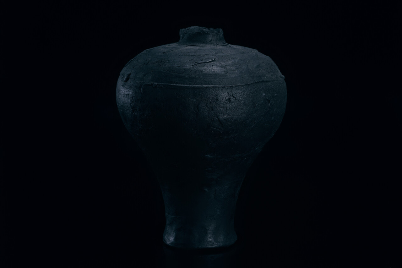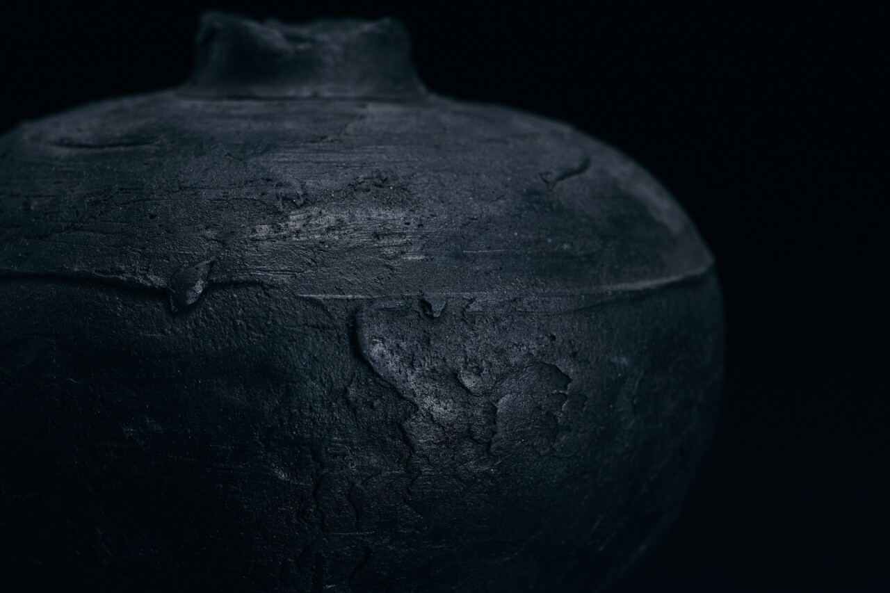 The first element to captivate the viewer when encountering this work is its lacquer-like black presence, which evokes a sense of serene darkness. To fully express the character of the clay, the artist deliberately forgoes the use of glaze and instead employs carbonized yakishime, a technique in which carbon is absorbed into the surface during firing through incomplete combustion. The resulting distinctive black surface accentuates the inherent depth of the clay, elevating it into a refined expression of contemporary beauty.