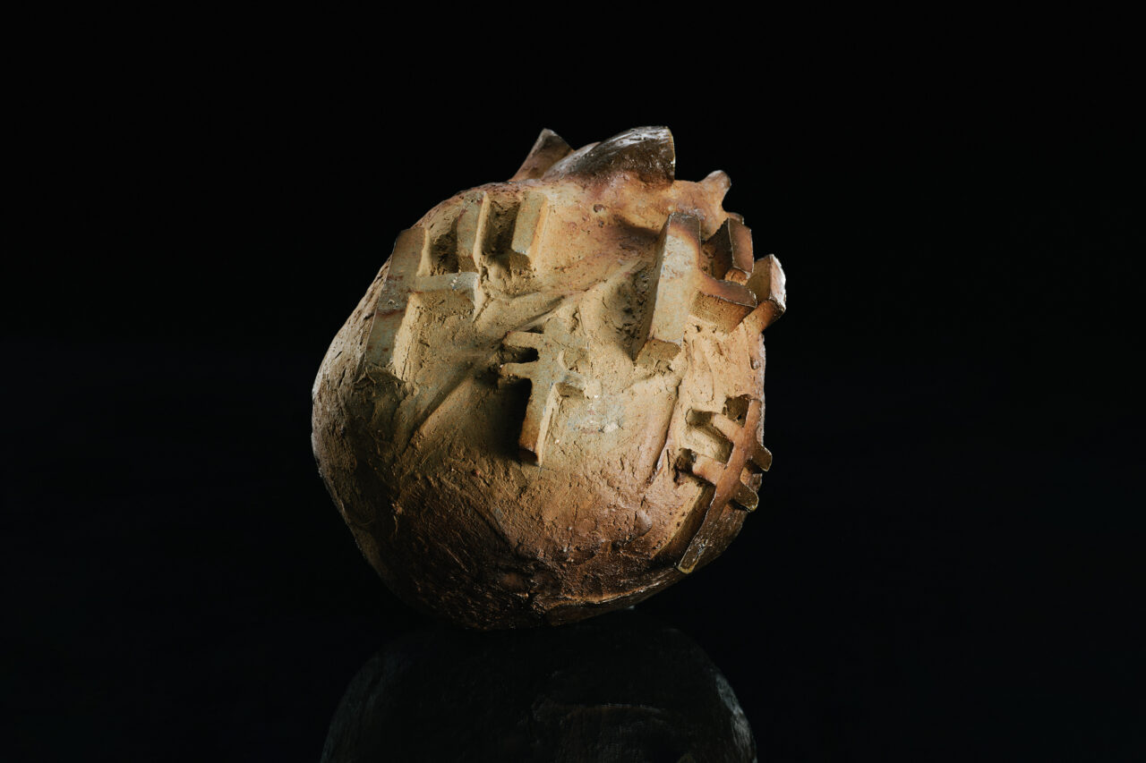 Hailing from Bizen, a region renowned for its pottery that evokes the primal ruggedness of the clay, ceramic artist Taiga Mori has created numerous works that are full of originality. In this work, “Doki-doki”, a heavy lump of clay burnt to a reddish-brown color, is shaped to resemble the human heart in its true form. In crafting this piece, Taiga was inspired by the Sacred Heart of Jesus Christ, a symbol of love for humanity. Overlaying the heart with characters for the modern Japanese manga expression “doki-doki,” (ドキドキ) which translates to a heart throbbing with excitement, he aimed to depict the fervent passion of young girl’s love. The completed artwork, born through the firing process in the kiln, not only symbolizes the ignition of love but also hints at its transformation into profound affection.