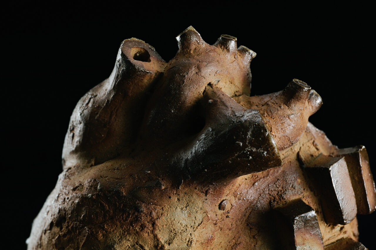 The Sacred Heart, a subject of devotion, has often been depicted as a burning heart in Western religious paintings. The idea of combining it with the burning emotion of a girl in love is unique, and the viewer’s encounter with the work is sure to evoke surprise and curiosity. This piece, “Doki-doki,” embodies Taiga’s own burning desire to create, as he continues his exploration of contemporary Bizen ware.
