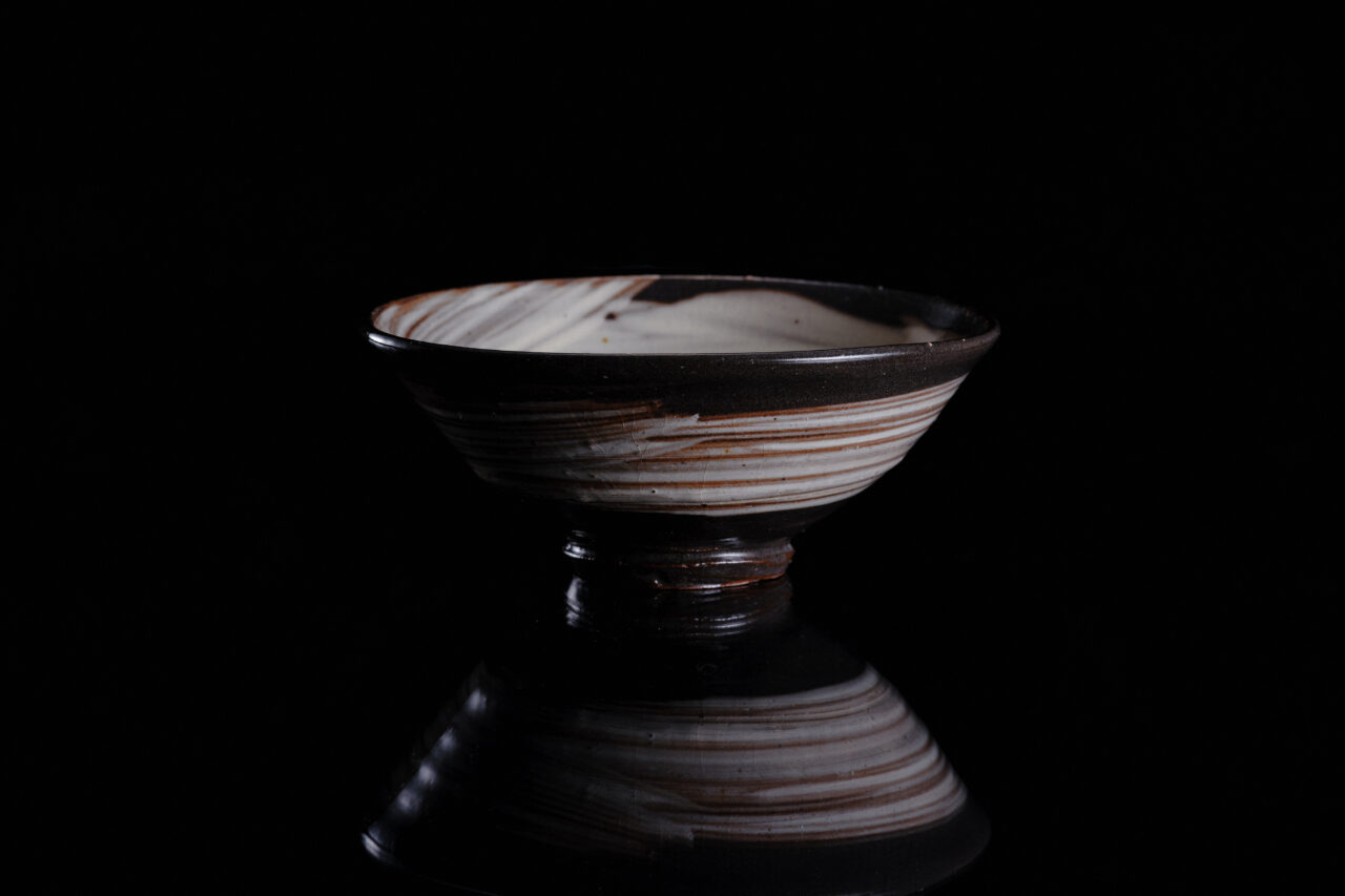 Takashi Nakazato’s Karatsu Hakeme Tea Bowl is crafted from iron-rich clay native to Karatsu. With a masterful hand on the potter’s wheel, he shapes a form of strength and elegance. A white slip, applied with straw brushes, lays flowing milky-white lines across the broad, open shape, and is finished with a clear glaze. The gentle interplay of the brush strokes and the deep brown clay surface creates an expansive, natural feeling, embodying the artist’s words: “I create by letting it flow without conscious thought.” This simplicity carries a charm free of unnecessary effort, imbued with an effortless, natural beauty.