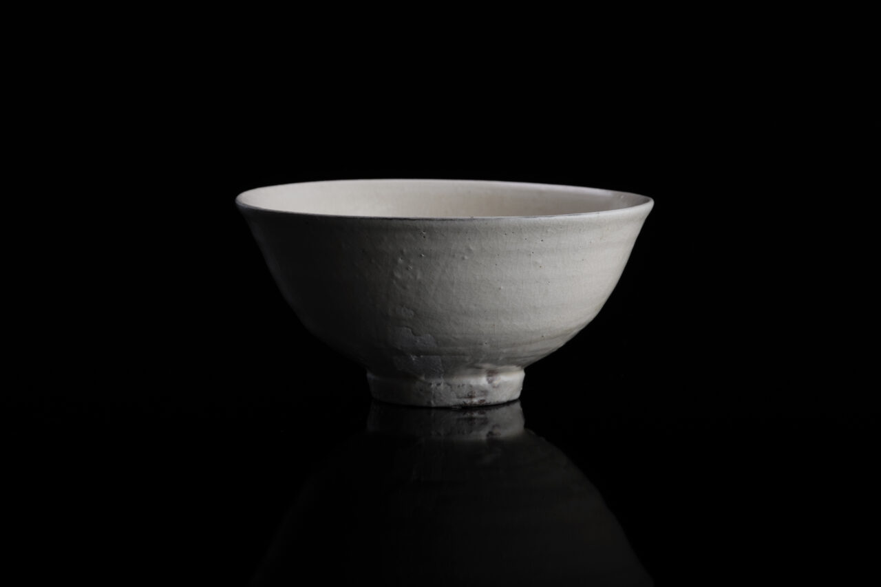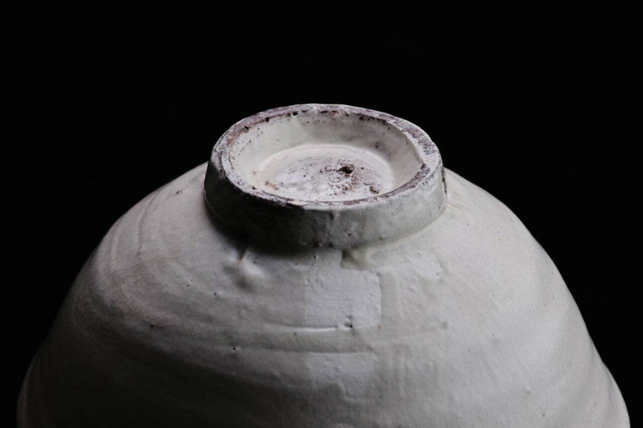 Hiroyumi Suzuki has studied ceramics in Korea, the homeland of the Kohiki style, and now lives and works in Iga, Mie Prefecture. This work, with its simple and clean shape and beautiful white surface with fine kan-nyu (crackle), was made from red clay collected in the mountains between Iga and Shigaraki. The earthy impression that peeps out slightly in black on the thin glazed foot gives a feeling of refinement, and the green tea reflected on the endlessly smooth white surface stands out in the most beautiful way. The user will discover the fresh charm of this tea bowl again and again, as its character deepens with the passage of time.