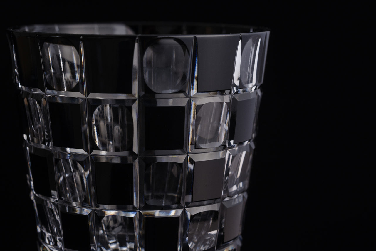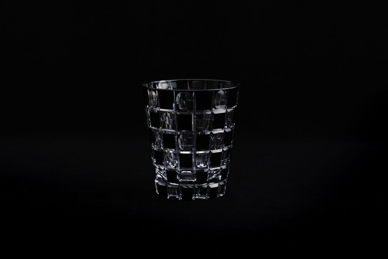 A traditional glass with a modern interpretation emerges through the encounter between a jet-black color and the Japanese traditional cut-glass pattern. The craftsman who inherited the advanced glass cutting techniques which started in the Edo period sculpt the glass in its opaque darkness with precision. Spend a luxurious time with your favorite drink in this chic glass.
