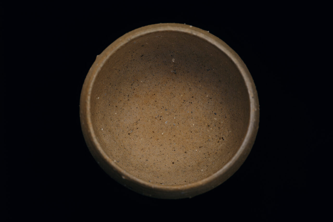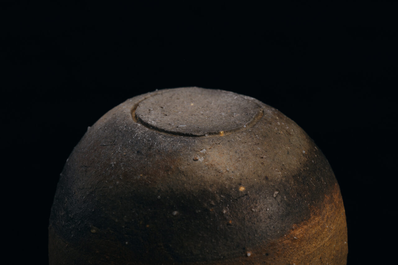 This piece, Shigaraki Tea Bowl, is a bowl that draws attention with its round shape and the contrast of light and dark colors. It is fired in an ana-gama (cave kiln) and placed in a box called a saya, which is designed to control the way the colors emerge. The surface of the bowl reveals feldspar typical of Shigaraki ware, conveying its texture in a simple, unadorned manner, and its thin, large, round shape fits well in the hand. The kodai or foot is pressed with a finger after separating the bowl from the turning wheel, adding an interesting nuance. Primitive yet modern, rough yet refined, the piece evokes a mysterious feeling, as if it contains contradictory elements simultaneously. It is a fine work that makes you believe there is a unique atmosphere that only this piece can emit.