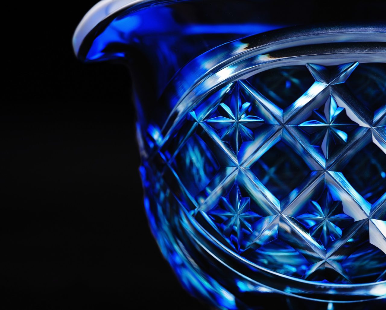 The hand-blown, double-layered colored glass has been crafted with faceted patterns of exquisite depth and shape. The softly blurred expression created by the faceted glass gives a profound flavor and an impression of ephemerality, signatures of Satsuma Kiriko that reflect the transient historical flowering of this technique. Enjoy the elegant brilliance and rich expression given life by the artisan’s technique.