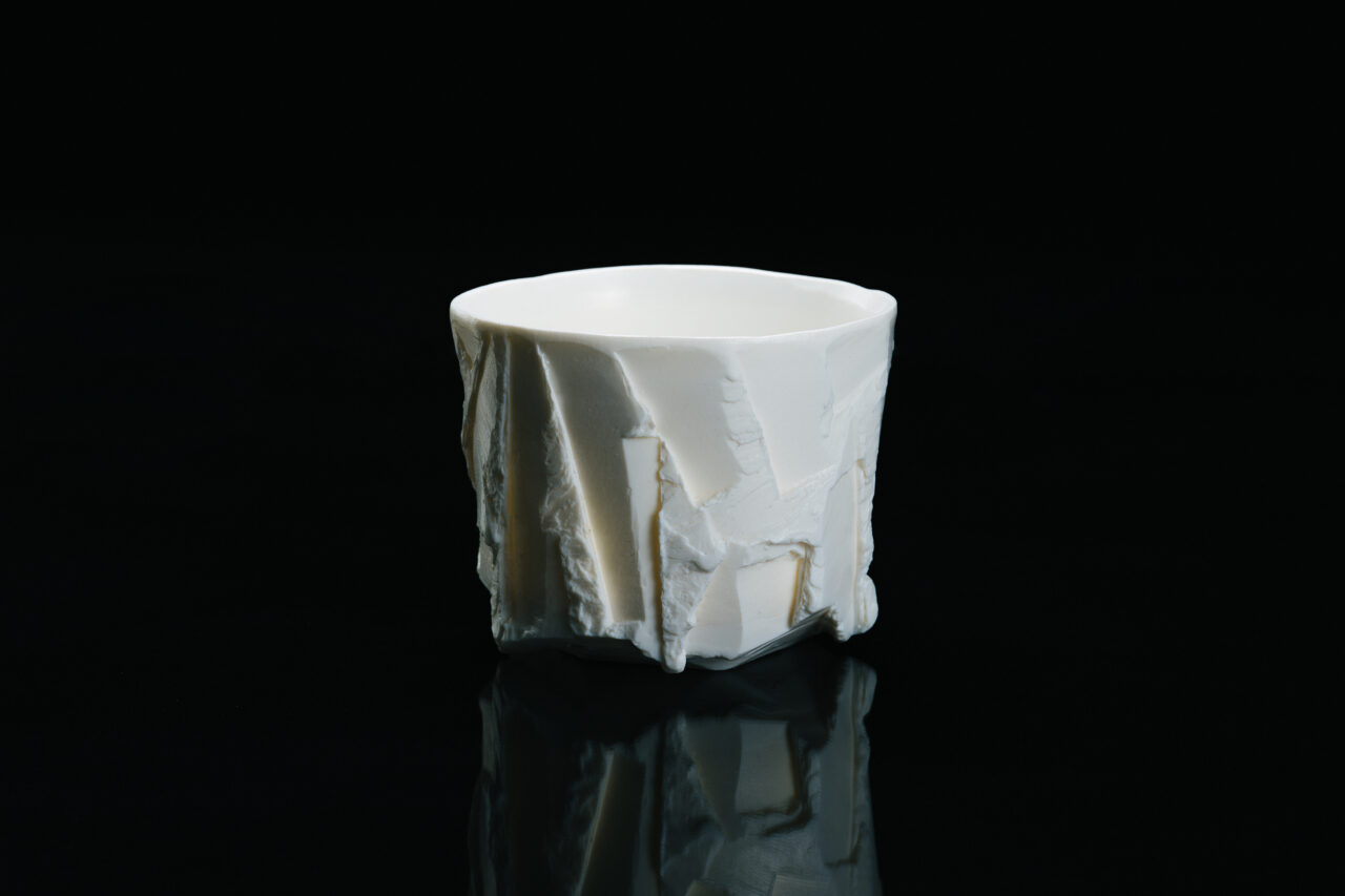 The various yohen effects that manifest on works during firing are a highlight of Bizen ware, but White Bizen is known to have been produced since the Edo period (1603-1868). Older pieces that have survived are rare, and the texture of white varies from artist to artist, even among contemporary pieces. Syo uses only the purest ceramic stone mined from deep underground in Mitsuishi in Bizen, and fires them unglazed in a wood-fired kiln to create a dazzling white scene unparalleled in the world. The sharply carved shapes, which resemble snow-capped mountain ranges, further enhance the graceful charm of the white clay.