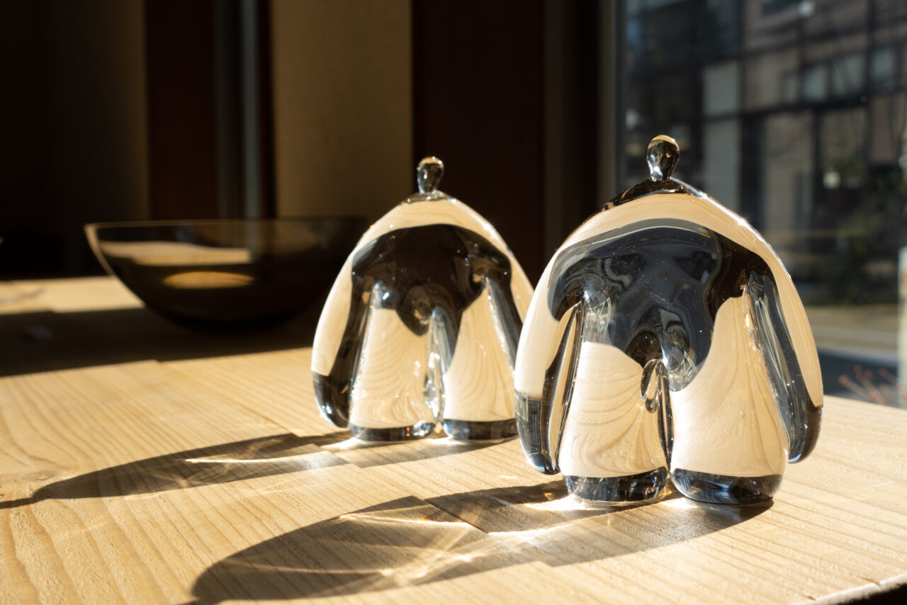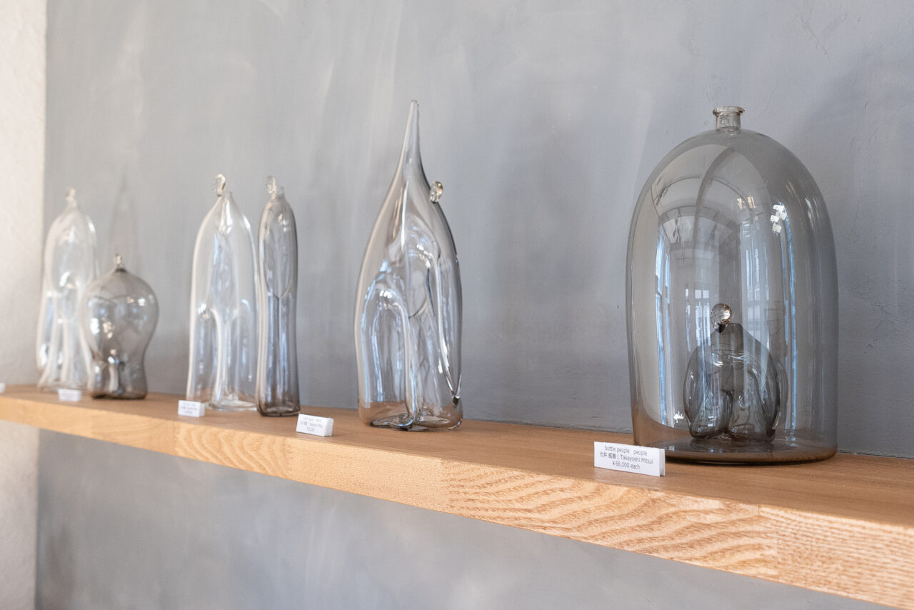 From February 5th to 10th, 2022, glass artist Takeyoshi Mitsui’s exhibition “Forms that Blend Together” was held at gallery mus in Daikanyama, Tokyo. The exhibition featured a total of 139 works from his popular series such as “Silence” and “Bottle People” as well as his new tea bowls.