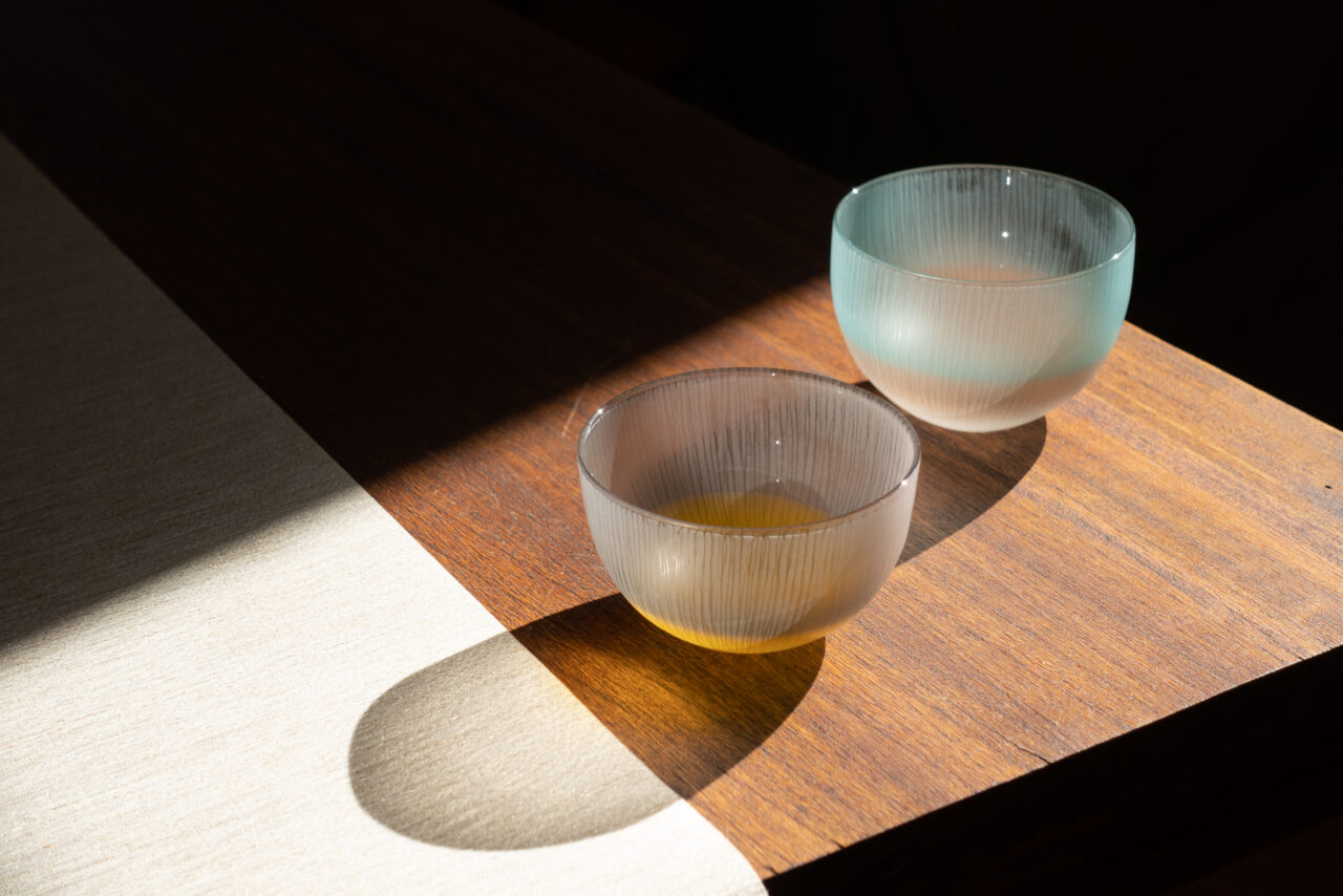 These new tea bowls were produced at the request of the gallery owner, and the small round shape was well received for its simple yet solid presence. The round shape of the “Silence” cup was also newly introduced. The “Silence” series is practical, yet with its beautiful and tranquil expression of softly colored glass and delicate engraving it has remained steadily popular. Through it we were able to catch a glimpse of the artist’s determination to go beyond and challenge himself with a new style and expression.