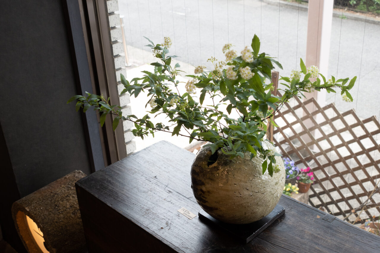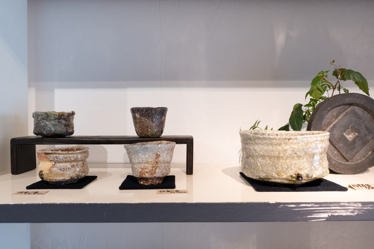 The “Shigaraki Tea Bowl,” which was also the headline piece for this exhibition, is a work of such confidence that Hiryoyumi himself said, “When I pulled it out, I immediately thought, ‘I want to use this as the cover of this exhibition’s invitation.'” It is a work with many remarkable features, with a beautiful combination of a well-fired texture and natural glaze flow. The charm of yakishime works like this Shigaraki is that each piece has its own unique character due to the vagaries of firing in a wood-fired kiln. This variety of unique expressions offer the pleasure of finding a favorite among the many pieces.