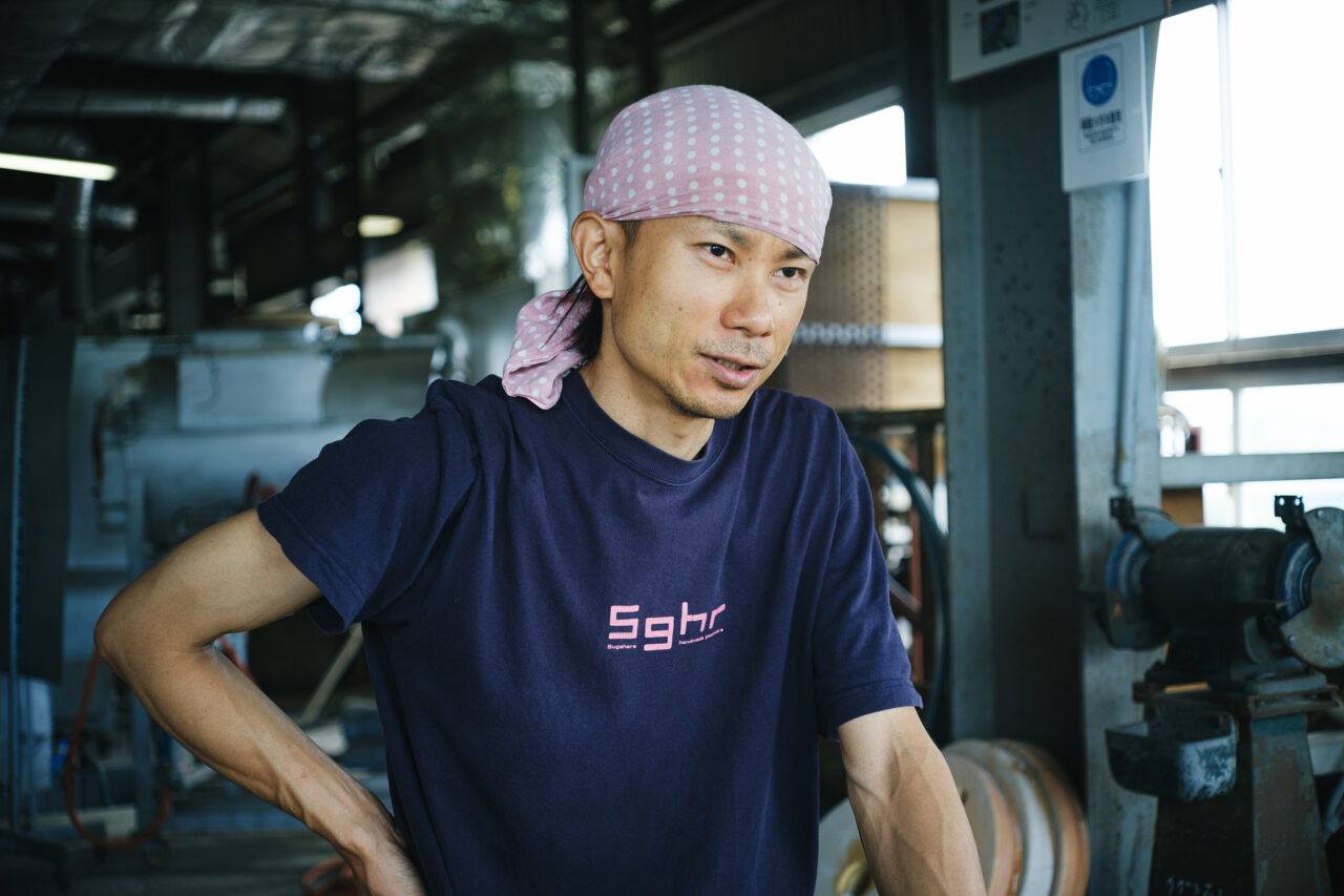 Kenji Matsuura, a native of Chiba Prefecture, is a glass artisan responsible for product development at Sugahara Glassworks. He became fascinated with glass when he started attending glassmaking classes as an engineering student, and joined Sugahara Glassworks, a local glass manufacturer, after graduating from university.