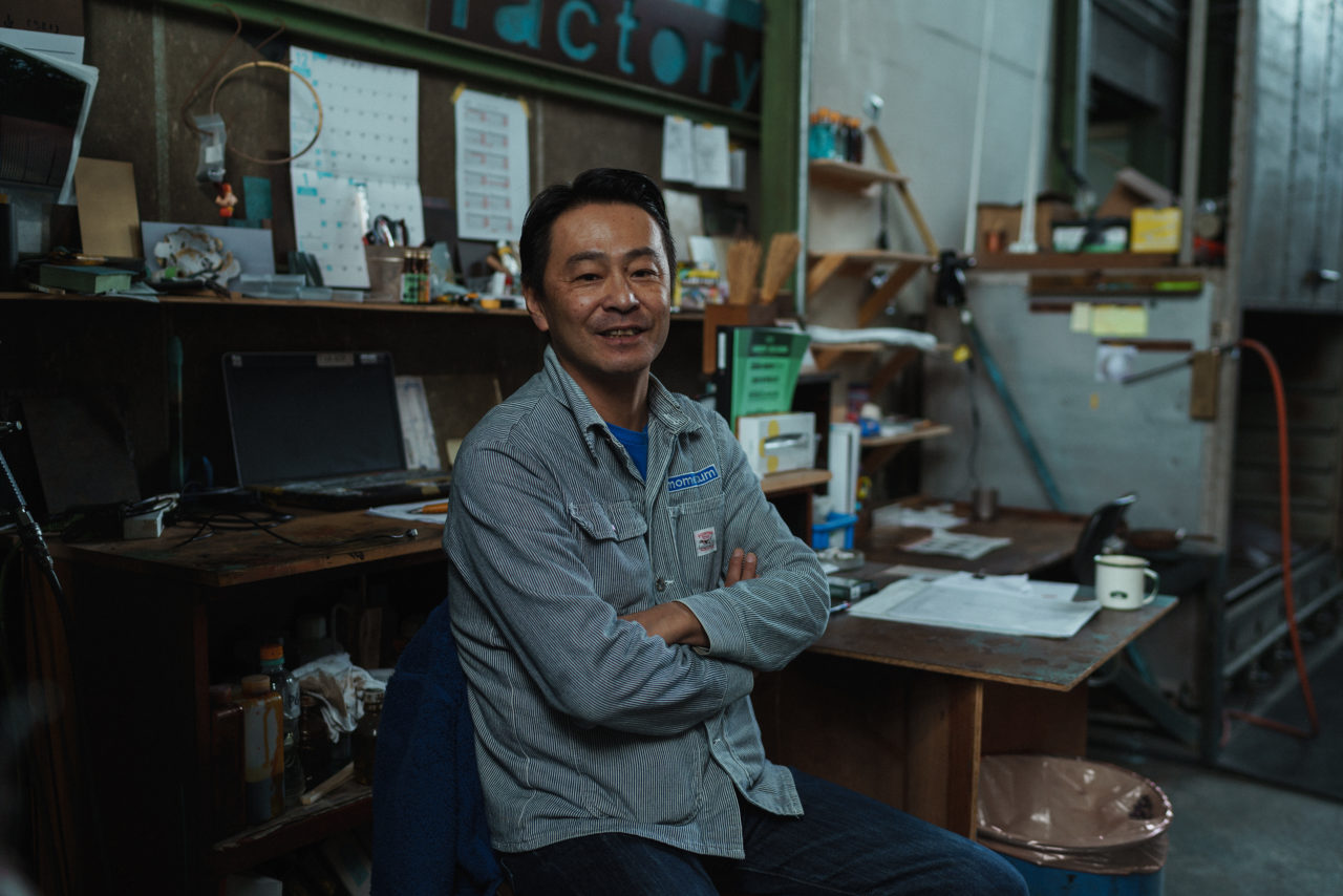 Mr. Koji Orii is the founder of “Momentum Factory Orii, Co.,Ltd.”, which deals with a wide range of coloring of Takaoka copperware. Born and raised in Takoka City in Toyama Prefecture, he is the third generation of a long-established “Orii-chakushokujyo (coloring factory). After graduating from university, he worked hard and had a fulfilling career in an IT company in Tokyo. However, he decided to take over the family business at the age of 26 years old and returned to his hometown. At that time, in the mid 1990s, the traditional kogei industry fell into a decline because of the burst of the bubble economy. Mr. Orii says that the traditional Takaoka copperware did not catch his interest. He was always looking to make products that he would consider as “cool”. Intend on creating something new, Mr. Orii went through many processes of trial and error by combining traditional techniques and new ways that he found and he finally succeeded in developing a technique for coloring rolled copper plates. Subsequently, their reputation in the interior design and building materials field began to spread which helped in the recovery of their company. Currently, he is aiming to break into the fashion market. “Make traditional kogei cool”. The conviction of Mr. Orii resulted in the growing number of young employees in the company. Looking forward to the challenges ahead, he endeavors to make plugged-in products so that the young, who will be responsible for the next age, will be attracted to the profession in kogei. The future of Takaoka copperware that he opens up will surely be appreciated by the next generations.
