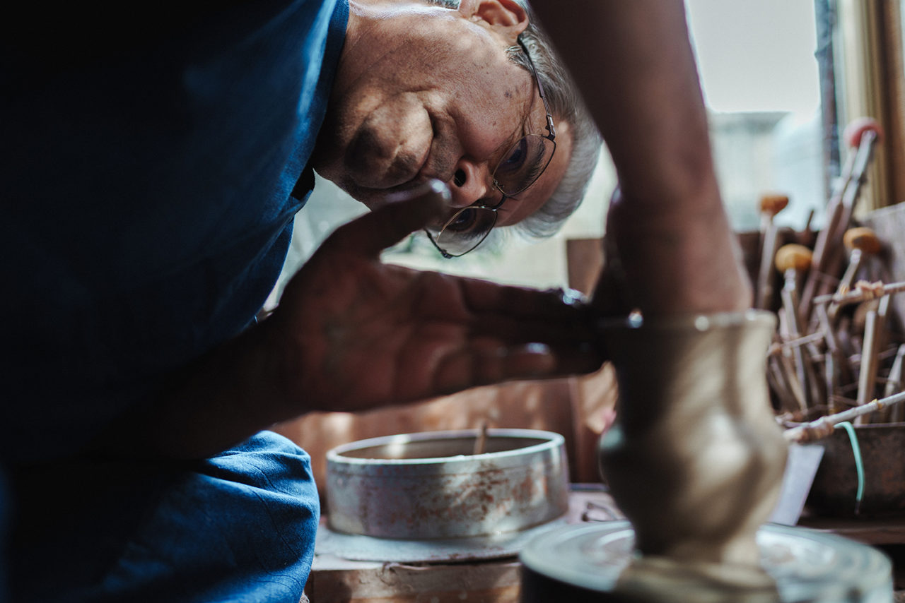 Mr. Seiji Ito, a teapot artisan in Tokoname, entered the world of pottery at the age of 20 and initially was engaged mainly in making teacups. When the growth momentum of the high economic growth period began to slow down, he steered towards the production and sales of teapots which has a higher added value and more difficult to create compared with teacups. “A teapot in the world of tea is like the leading actor in the world of play and it has been my desire to deal with it someday”, Mr. Ito said. Over the past 40 years, he has continued to make a variety of quality teapots that combines design and functionality while seeking new challenges such as participating in tea ceremony events in Taiwan. It is his dream to work with the younger generation who aspire towards crafts and to share knowledge and skills with each other. As an artisan who cherishes his craft, he has always wanted to produce a user-friendly teapot which fits naturally in the hand and blends seamlessly in our daily life. He smiled gently and said, “I want to enjoy tea and hope everyone does the same, that is all”.