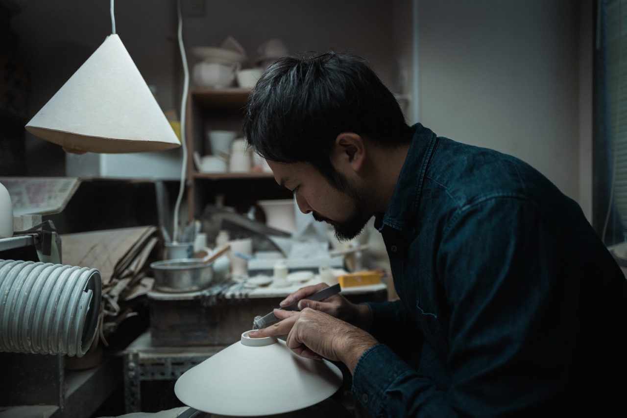 The roots of Shuji’s thinking lie in his reverence for Nabeshima ware, a prestigious and high quality style of Japanese porcelain famous for the intricacy of its paintwork. In 2019 he entered into a groundbreaking collaboration with a skateboarding brand with the goal of introducing the beautiful aesthetic of the exquisite painting techniques he had inherited to a broader range of people. Shuji says “It’s interesting to see how a change of perspective can give traditional styles a new fresh and fashionable sense. I am hoping we can succeed on that originality.”