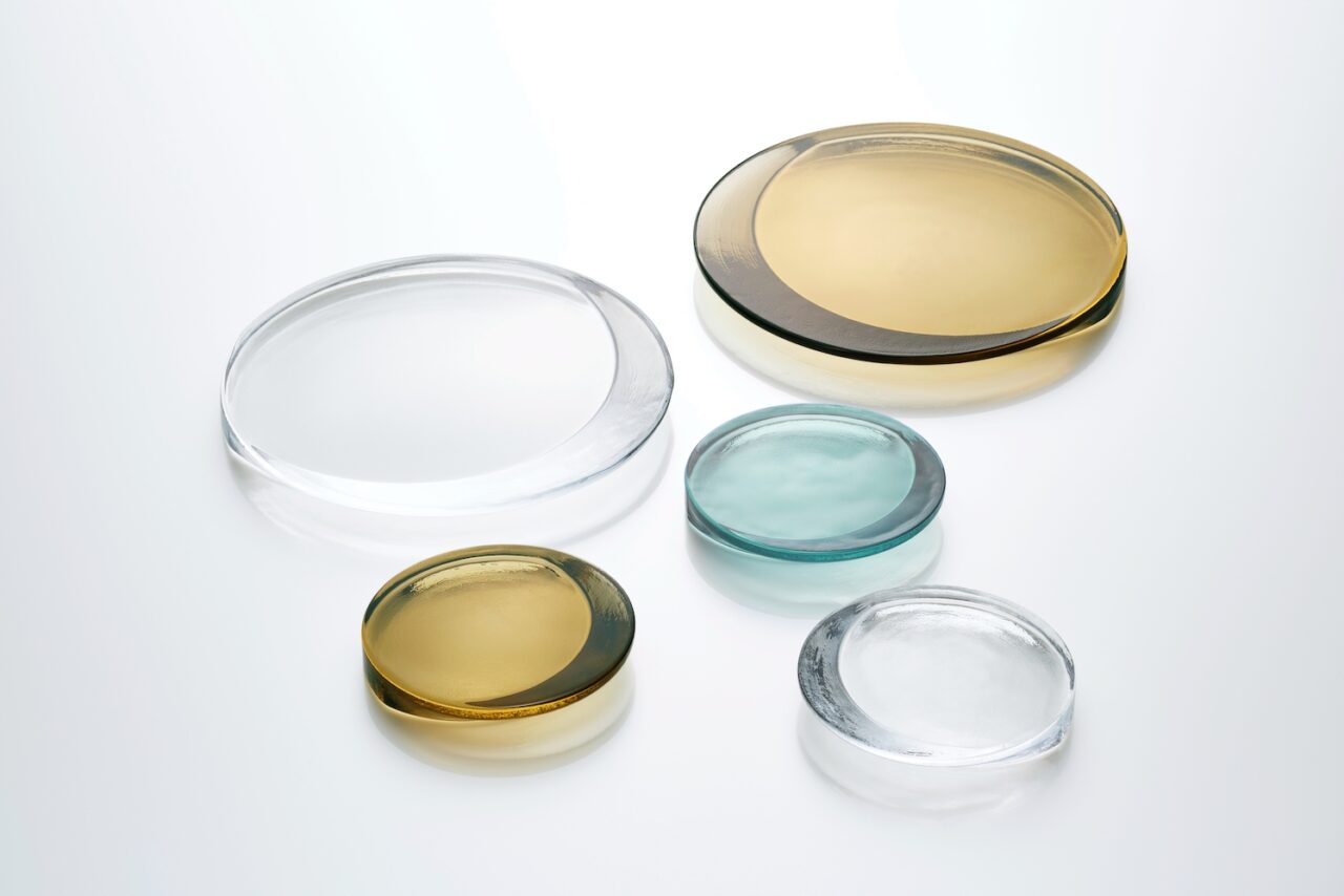 Inspired by the crescent moon, the “Michikake” plate has a beautiful design that captures the subtle waxing and waning phases as viewed from different angles. The design features changing color tones depending on the thickness of the glass and the radiance that varies with the amount of light it receives. The surface, finished flat like a calm water surface, is also impressive.