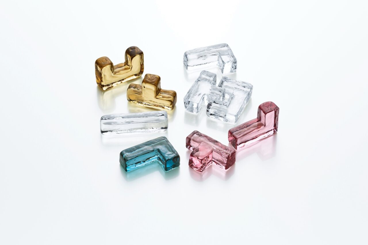 The chopstick rest “Play” is like a colorful puzzle, designed not only for use on the dining table, but also for playing and enjoying the touch and feel of the glass. The molten glass is poured into small casting molds and quickly molded by pressing it with a matching press mold applied from above.