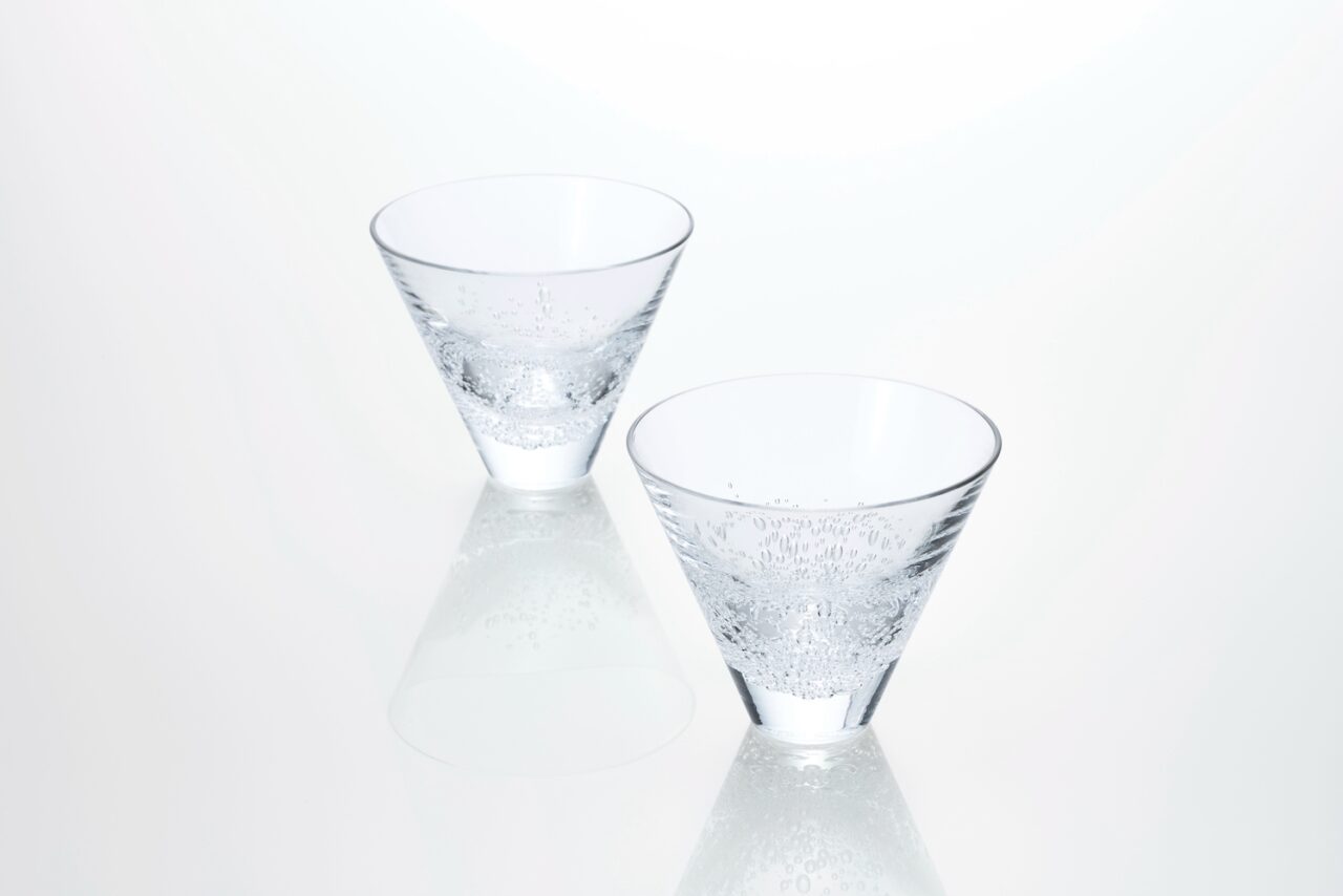 A new coupe-shaped champagne glass has been added to the popular “A wa glass” series. The wide opening of the glass not only makes the drinking experience visually appealing, but also makes it easier to savor the aroma. The position of bubbles inside the glass is carefully adjusted to achieve a beautiful visual effect.