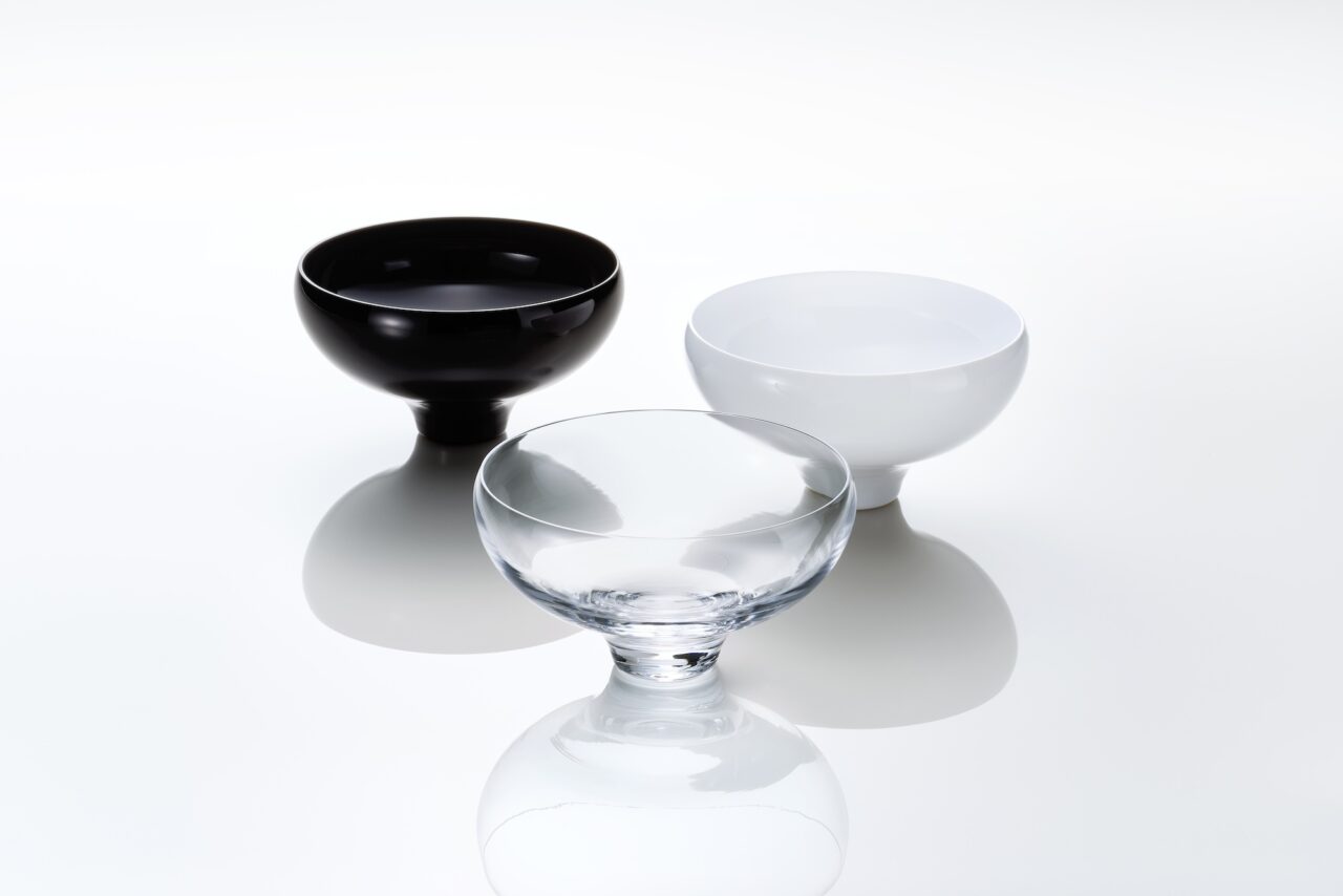 The “Yuuhou” series features a distinctive shape that gently cradles plated dishes. Created by a skilled artisan who has created numerous designs and strives for beautiful forms through glassblowing, each piece is meticulously shaped with careful attention to detail and a harmonious balance, including the vessel’s height. The modern color lineup, featuring opaque white, black, and clear, adds to its appeal.