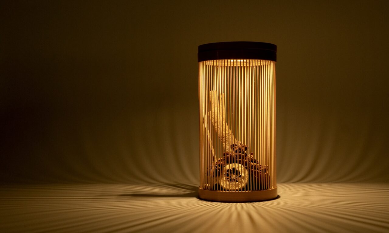 The “Sonnenglas® SOMO” solar lighting unit, powering this lantern, is a next-generation module developed by Sonnenglas. Handcrafted in their South African workshop under fair trade principles, it aims to create job opportunities and stable employment. This compact, palm-sized unit charges purely with sunlight without any electricity usage, provides up to 100 hours of illumination on a single charge, making it ideal for outdoor activities and emergency preparedness. The exquisite lantern shade is made by Miyabi Andon in Shizuoka Prefecture, who produces lifestyle items such as lighting fixtures, tea ceremony utensils and flower vases. Using the traditional Suruga bamboo basketry technique, they carefully weave thin bamboo strips around 1 mm in width with exceptional craftsmanship.