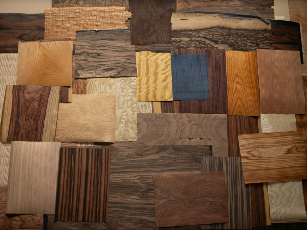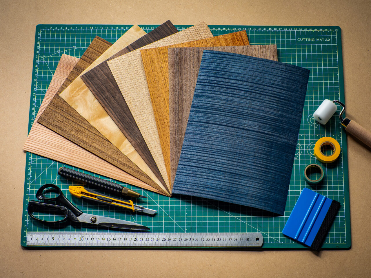 The “Tsuki-ita Sheet” is a high-quality material created by slicing natural wood into thin layers and backing it with Japanese paper. With a selection of over 90 types of natural wood, including rare species sourced from around the world, users can choose according to their preferences for color, grain pattern, and texture. Available in A4 and 900 × 1800 mm sizes, with custom orders also accepted, the sheets can be applied to a wide range of uses, from crafts and furniture to interior design. Despite its professional quality, the material can be easily cut with scissors or a utility knife, and attached with a household iron which makes it accessible for beginners. Its versatility allows for delicate cutting, making it especially suitable for refined, highly designed works such as wood inlay.