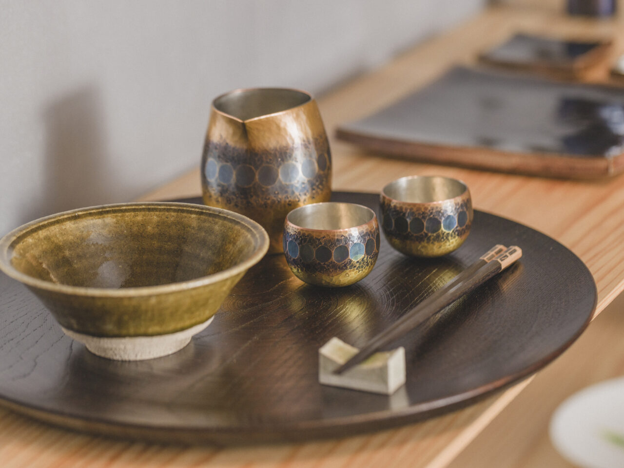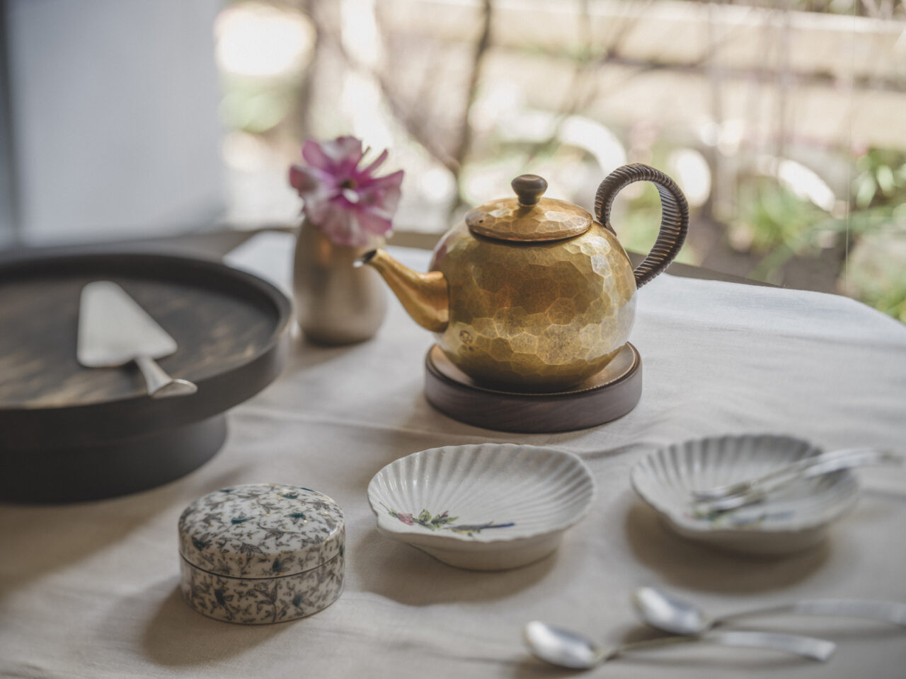 Following the Tsubame flagship store in Tsubame City, Niigata Prefecture, and the Ginza store at GINZA SIX, the new store “Gyokusendo KOGAI” opened in Nishi-Azabu, Tokyo on March 10, 2024. The name “KOGAI” is derived from the old town name of this area and also refers to a type of craft item that metal artisans used to make as a women’s hairpin. The new store is a craft select shop that offers a wide selection of handcrafted items that can be used alongside copperware such as metal pots, tea ware, and sake ware produced by Gyokusendo. At the opening in March, in addition to Gyokusendo, various products from 12 artists and manufacturers such as woodworking, textiles, lacquerware, ceramics, glassware, and metalwork were displayed. The store also provides advice on maintaining and using copperware, creating a space filled with the joy of incorporating craftsmanship into daily life.