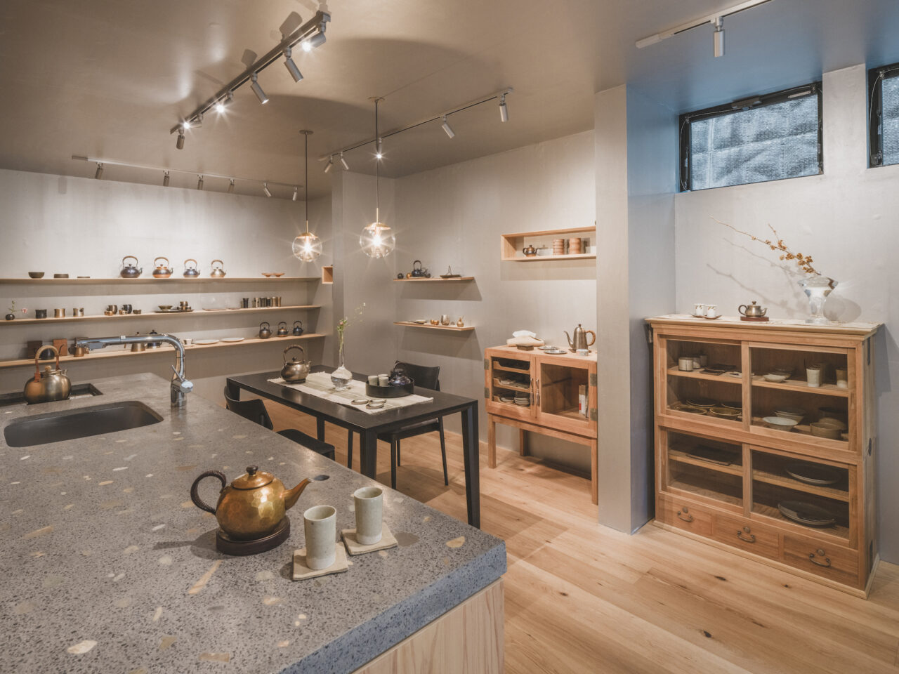 “Gyokusendo KOGAI” was created with the aim of providing a space where people can spend enriching moments together, touching crafts and engaging in interactive communication, amidst the rise of non-face-to-face online sales. To allow for a relaxing experience, the store is equipped with a kitchen counter and chairs for serving tea. Conveniently located about a 10-minute walk from Omotesando Station, the store invites visitors to find craft items that will uplift their spirits and enrich their lives.