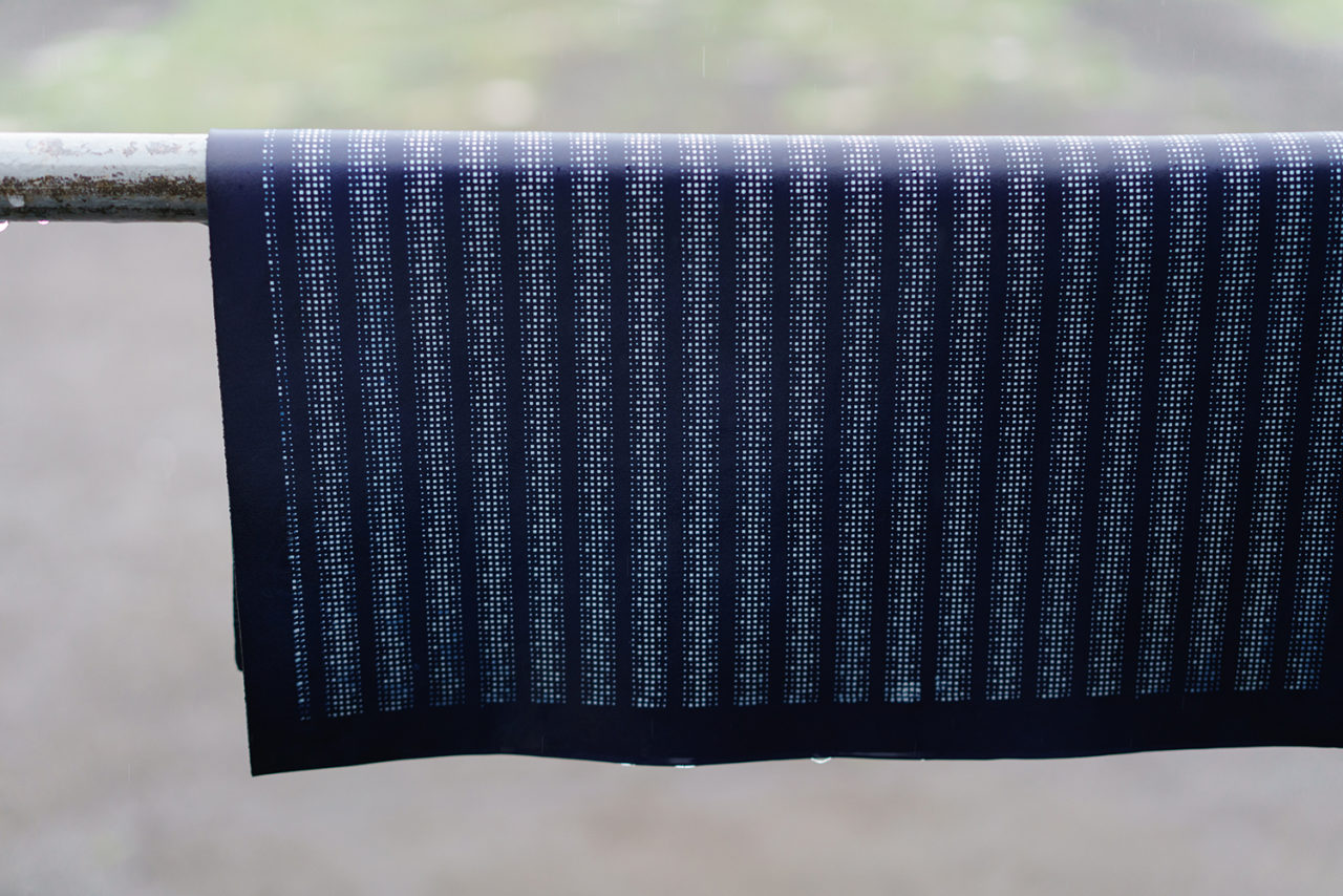 原田さんは、藍染以外にも、刈安や茜などの草木染めを取り入れており、自然の色合いを革に映し出すことに大きなこだわりを持っている。また、着物の染めに使われる日本伝統の型染めの技術を取り入れるなどの飽くなき挑戦も、ファンを惹き付ける理由の一つだ。隔てなく広がる「縁」と「空」を意味する「enku」は、進化し続ける。国や時代を超えて愛されるためにー。