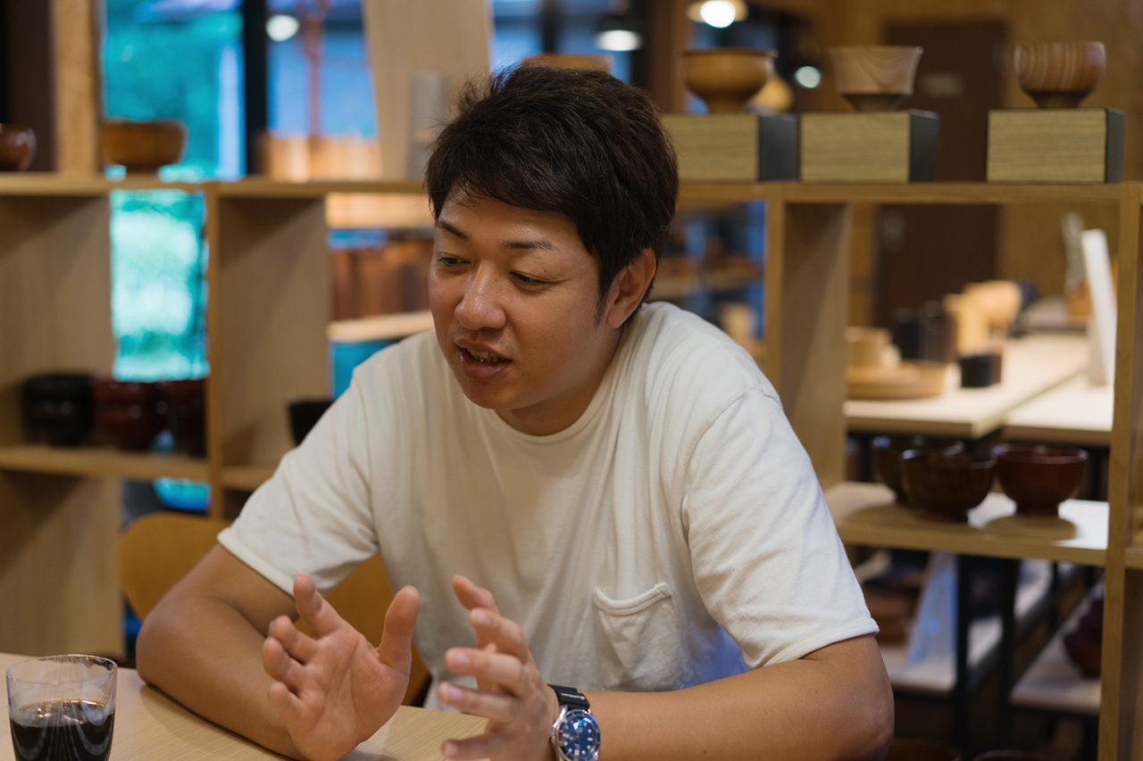 木地挽きの産地として名高い、石川県山中温泉。この地で、我戸幹男商店は1908年、我戸木工所として創業された。初代は木地師であったが、二代目になると漆器の販売を始め、三代目が漆器の企画と販売を本格化させた。現在、社長を務める正幸さんは四代目。新たな販路開拓のために、外部のデザイナーを起用するなどして、デザイン面を重視した商品企画に力を入れている。