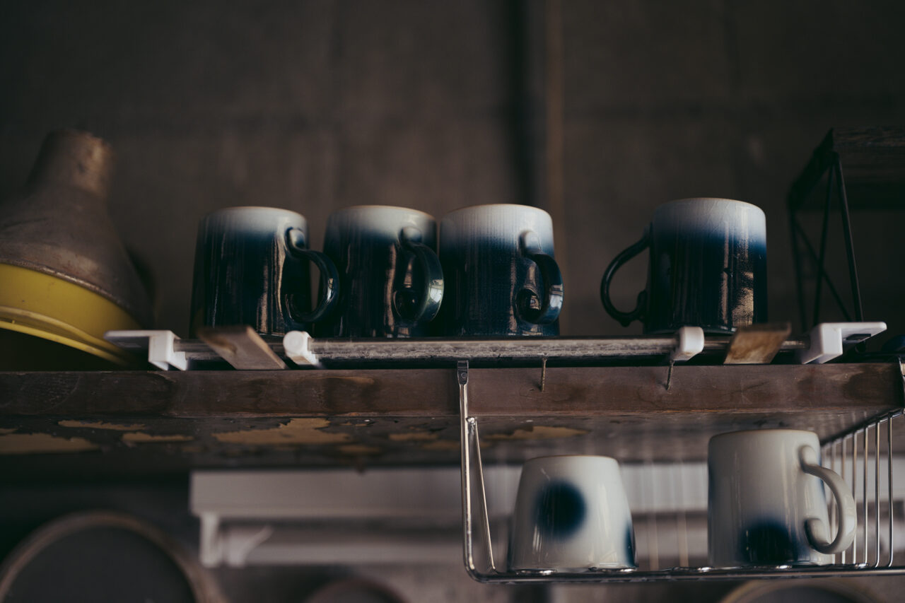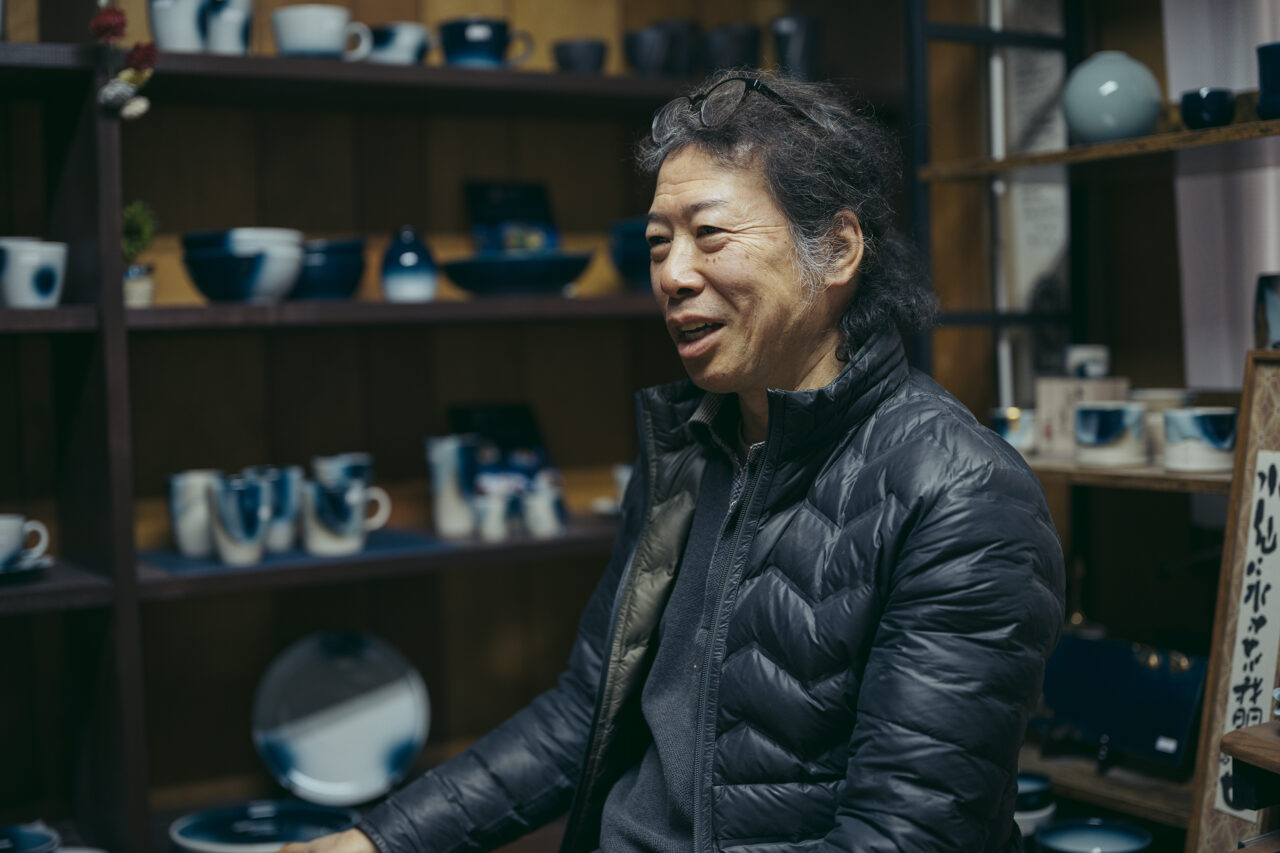 ヨシュア工房は竹西圭仙さんが開いた圭仙窯を前身とし、今年で創業60周年を迎える砥部焼の窯元。創業当初からバブル期までは、シンプルな染付商品の製作・販売が中心だったが、バブルが崩壊すると景気の良かった時代は終焉を迎え、2000年に2代目で現社長の竹西辰人さんが家業を引き継ぐこととなったときには、経営は非常に苦しい状態にあったという。だがそんな時だからこそ、竹西さんは自らのできることに前向きに取り組んだ。さまざまな商品の試作に挑戦し、商品のブランディングについても積極的に学んだ。そうして誕生したのが、のちのヨシュア工房の看板商品となる《ヨシュアブルー》シリーズだ。