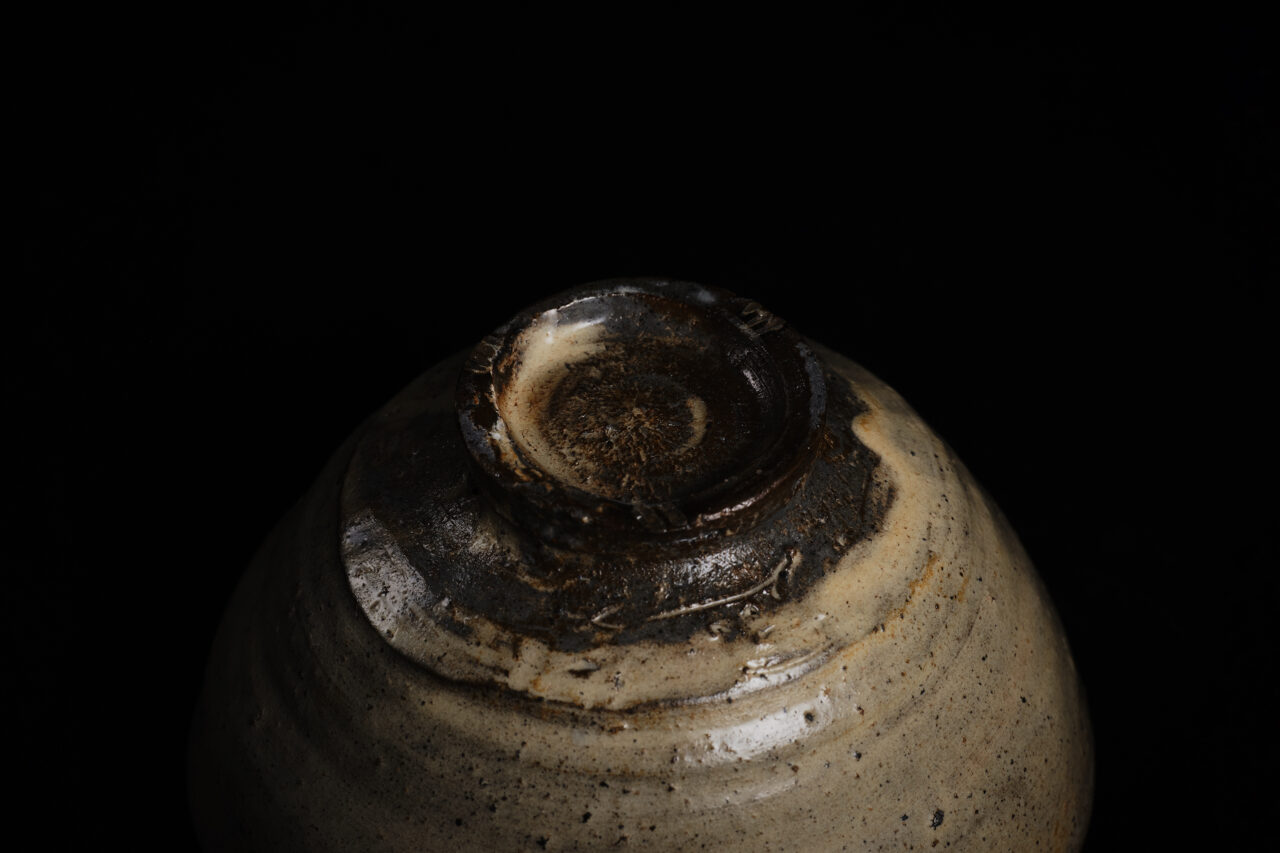 化粧土は坂倉新兵衛窯で代々使われる大道土で、胎となる黒い土は作家自ら地元の山中で採取してきたもの。産地ならではの素材は、長らく「萩焼」というものに特徴とされてきた柔和な風情を構成する要素のひとつであろう。生掛けで施された化粧を透かして、ところどころ胎土の色が滲んでいる姿が味わい深い。土の表情をより直截に表現しようとする坂倉氏のこだわりが詰まった、多くの見どころを湛えた作品である。