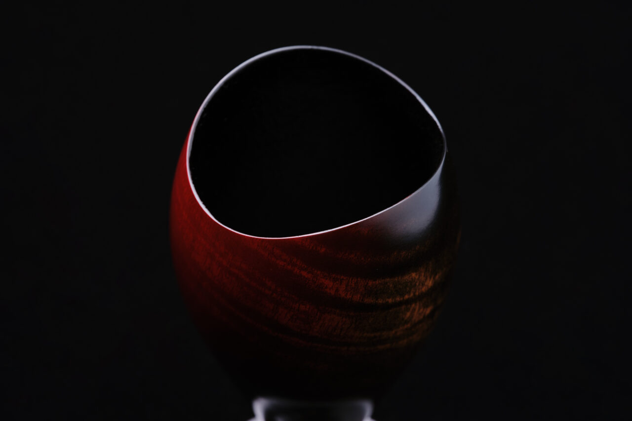 田中氏は、木地挽きの修行を積む中で栃という素材に出会い、その個性の豊かさに魅了されたという。栃ならではの繊細な杢目の魅力を最大限に引き出すため、一つひとつ自らの手で形を削り出し、それが最も美しく見える状態まで丁寧に漆を塗り重ね、研ぎ、磨いていく。一切の妥協を排した作品は芸術的に完成度が高く、酒器としてだけでなくオブジェとしても見栄えのするものだ。作家のこだわりが詰まった作品を、手元でゆっくりと味わってみたい。