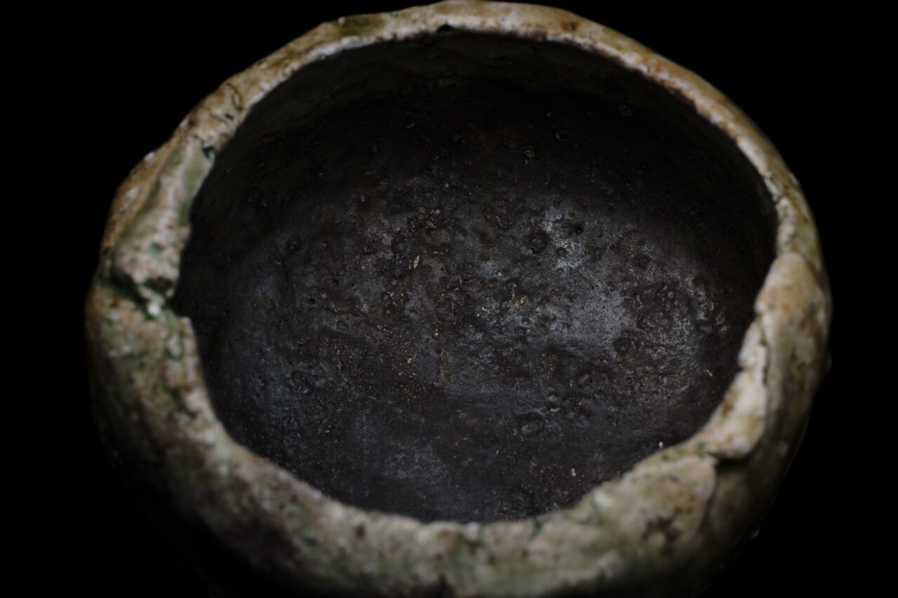 自然の荒々しさを感じさせる一方で意図的に演出される豪快な意匠。高温で焼成を繰り返すことによる艶やかな若草色のビードロ釉。かつての伊賀城主の庇護のもと、伊賀焼は茶席にまみえる中世の茶人たちをたちどころに虜にした。