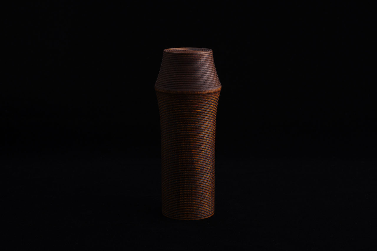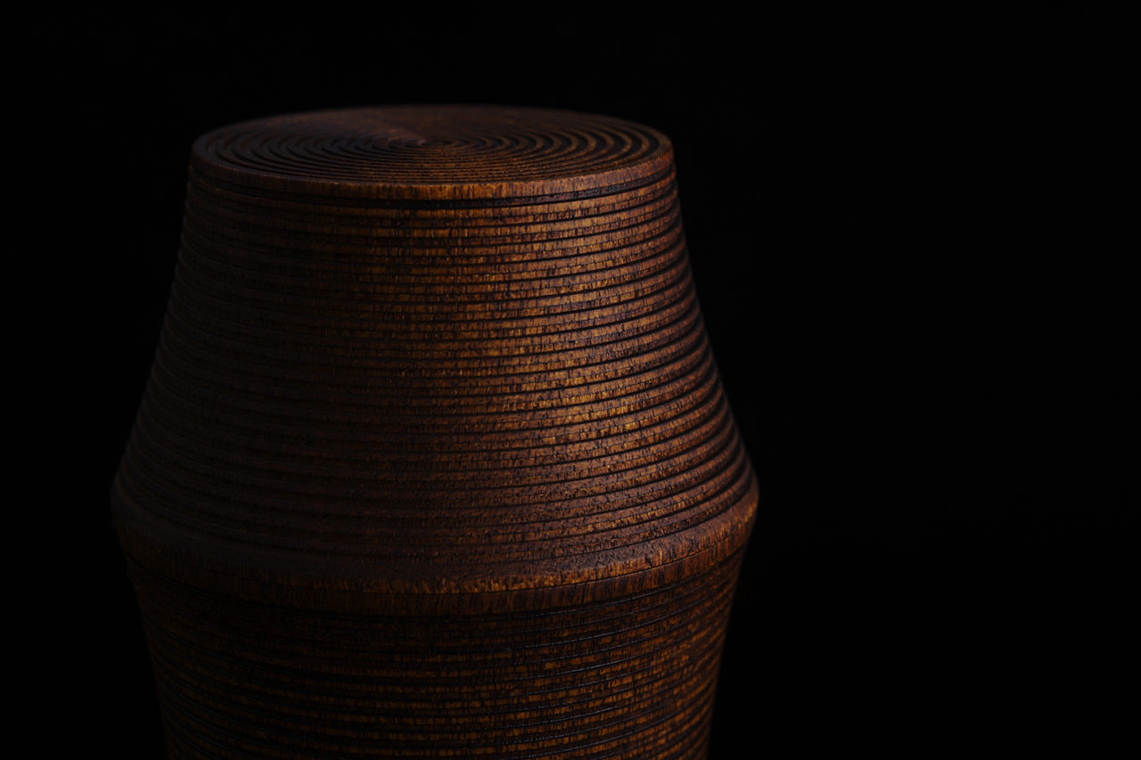 KARMI 菱 漆芸 メーカー 我戸幹男商店 産地 石川県・山中 サイズ W78 × H193 × D78mm 素材 ミズメ 筋が織りなす立体の美 石川県山中の伝統技法である加飾挽き「千筋」が丁寧に施された茶筒。蓋が筒に吸い込まれるように落ちる姿は、茶筒の高い密閉度を示し、誇らしくも見える。木目を活かした塗り技法「拭き漆」の魅力も重なり、風格ある茶筒に仕上がっている。 SHARE WITH