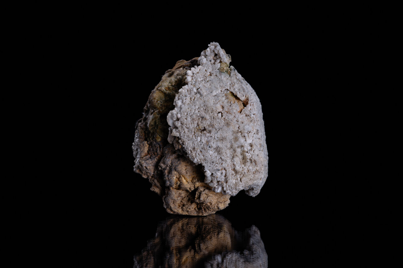 谷本貴作《嫌気的》は、そうした嫌気性生物からインスピレーションを得て制作された。陶芸家にとって、制作に欠かせない素材である土。その土に正面から向き合い続けてきた作家が、「深呼吸」をテーマに制作したものだ。伊賀の土と長石を用い、何度も焼成を繰り返して作られたこの作品は、土のずっしりとした密度からしておよそ酸素とは無縁のような佇まいをしている。嫌気性生物を拡大するとこんな姿だろうか、と想像が膨らむ。