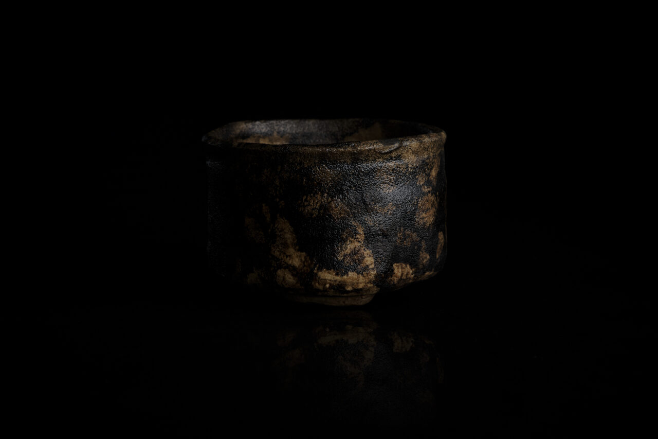 古来、日本では黒狐は太平の世の訪れと共に現れる平和の象徴とされてきた。楽焼の要素とその姿から「黒狐手」と作家が銘打った茶碗。そこには、平和への深い祈りが込められている。