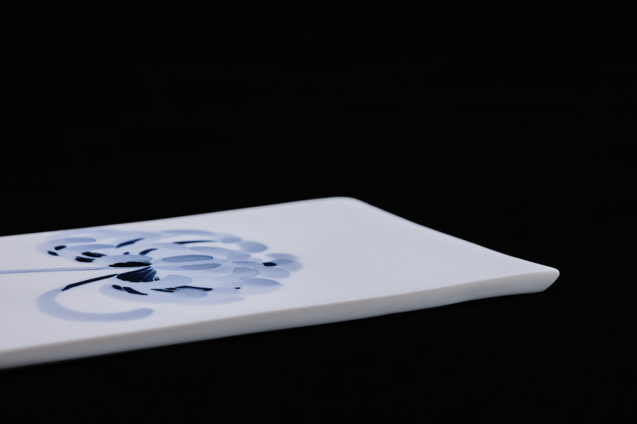 長角プレート 菊 陶芸 メーカー 眞窯 産地 愛知県・瀬戸 サイズ W100 × H342 × D50mm 素材 陶石 美しく咲く 19世紀初頭に生まれた瀬戸染付。瀬戸の自然を写し描く瀬戸独自の技法として、長く人々に親しまれてきた。 本作は、1919年創業の瀬戸の窯元「眞窯」による、長角プレート。真っ白な白磁のキャンバスに咲く、一輪の菊が美しい。無釉の磁肌に描かれた迷いのない呉須の濃淡が、意匠の確かな存在感と、染付の上品さの演出を同時に叶えている。瀬戸の職人の手による筆の跡を、じっくりと味わいたい逸品。 SHARE WITH