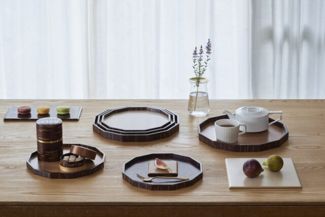 紙のように薄く削り出した木「突板」を貼る木材加工を専門としている森工芸。1953年に徳島県で創業して以来、培ってきた技術や木の知識を受け継ぎ、住宅の内装提案や木製家具・工芸品の製造販売を行なっている。自然の芸術である美しい木目を生かしながら、張り合わせや組み合わせ方を工夫した多様な意匠が特色だ。2020年にフランス パリの展示会「メゾン・エ・オブジェ」で発表し、好評を博したトレイ《RAYS TRA...