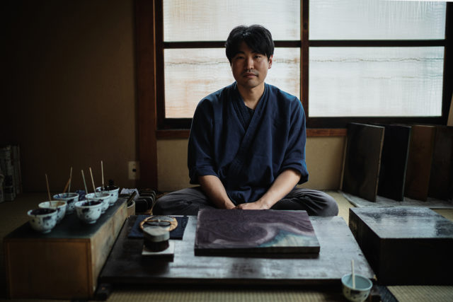 絵具を調合し、版木に拡げる。その上に和紙を慎重に乗せて、バレンで摺る。息を飲んで見守っていたこの一連の作業の後に、ぱっと版木から剥がされた和紙には、奥行きのある美しい色が乗っていた。「ただ色を乗せているだけですけど、摺り方の質次第で、遠近感が生まれたり物質感が出たりする。それが一枚の絵の中でぴたりと合うと気持ちいい」と笑うのは、高橋工房で摺師として働く早田憲康さん。美大卒業後、建造物の修復関係の仕...