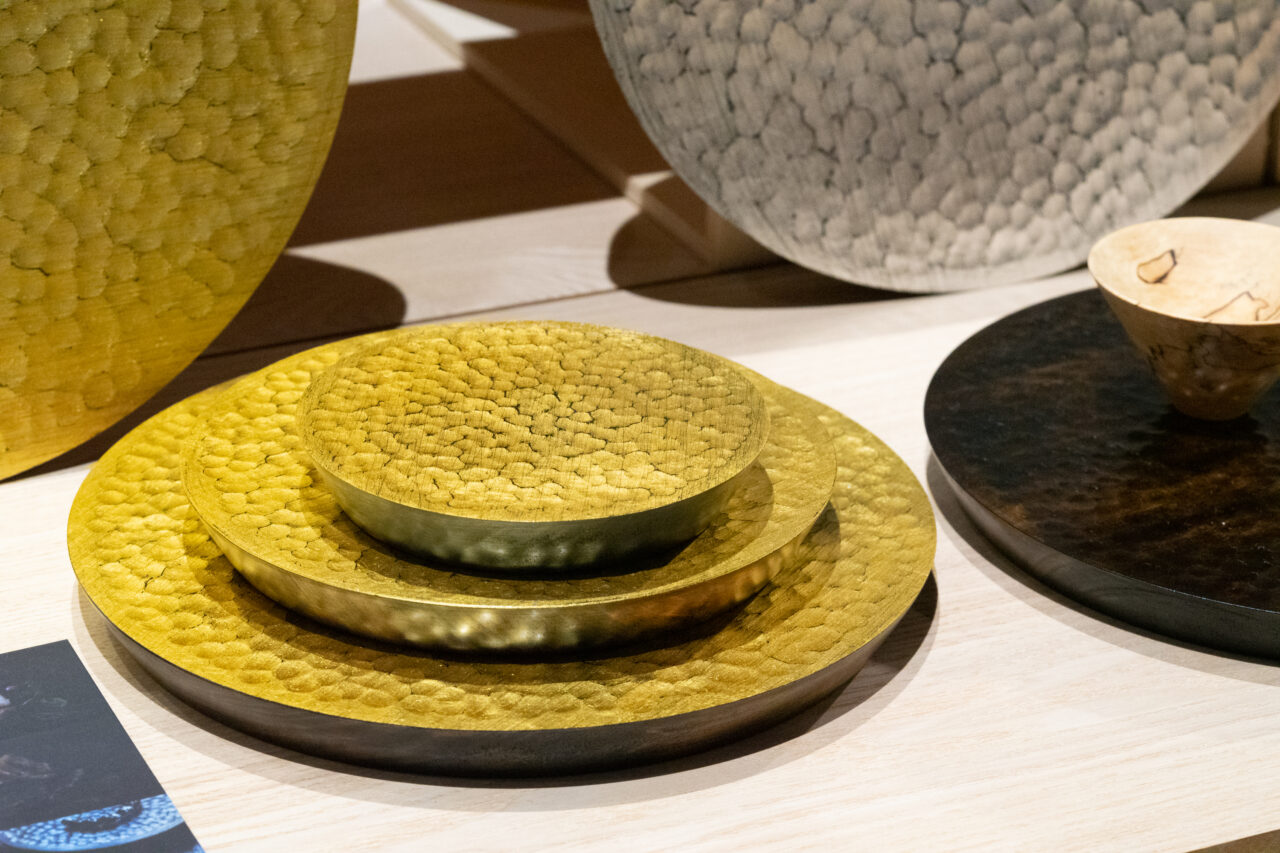『ててて商談会2021.10』 レポート 2021.10.26 ててて協働組合は、10月13日(水)から15日(金)の3日間に渡り、東京 南青山のスパイラルホールにて合同展示会「ててて商談会2021.10」を開催した。 総勢約80組の作り手が出展した今回の商談会。ててて協働組合設立当初より出展を続けている石川県の山中漆器メーカー 我戸幹男商店は、新作「アロマディフューザー」を提案(価格・販売時期未定)。これは、同県九谷焼の製土メーカー 谷口製土所とのコラボレーション商品で、山中漆器の蓋物の中に入れた九谷焼の原料「花坂陶石」にアロマオイルを垂らして使うというもの。ギフトにぴったりの粋な商品だ。社長の我戸正幸さんは、「この商談会は、いつもお世話になっているお客さまとのコミュニケーションの場。他の出展者も感度が高いので、さまざまな情報交換もできて刺激になる」と話す。 ててて商談会2021.10 ©Naoki MIYASHITA 新作・アロマディフューザー(我戸幹男商店) バリエーション豊かな建築内装材(輪島キリモト) 同じく常連出展者で、木工・漆製品の展開を手掛ける石川県 輪島キリモトは、輪島塗の下地に用いられる珪藻土の特徴を活かした、金属のカトラリーにも強いプレート類をはじめとするテーブルウェアの展示のほか、建築内装のサンプルパネルも展示。「建築デザイナーやプランナーの方々にもご覧いただける機会。テーブルウェアも建築内装材もどちらも提案できるのが強み」と社長の桐本泰一さん。 人気の「funew」シリーズ(木本硝子) 東京の硝子メーカー 木本硝子は、使用済ワインボトルを活用した「funew」シリーズを展示。SDGsへの関心が高まる昨今、アップサイクルの視点を取り入れた当シリーズはバイヤーからも注目を集めた。富山県高岡市の高岡漆器メーカー 駒井漆器製作所は、木に槌目を付け漆や箔で仕上げたユニークなプレート「鍛木皿」を展示。木のぬくもりと槌目が融合した唯一無二の風合いは、新たな料理の器としての可能性を感じさせる。 「作り手」「使い手」「伝え手」の3つの手が共鳴しあえることを目的に掲げて活動してきたててて協働組合は、2021年秋で活動開始から10周年を迎えた。「作り手」「伝え手」のコミュニティの場と位置付けられるててて商談会は、大きく変化していく時代の中で、これからのものづくりを「使い手」に繋げるべく、盛況のうちに幕を閉じた。 文:堤 杏子 ■ 関連情報 ・ててて協働組合 ウェブサイト https://tetete.jp/ SHARE WITH KOGEI STANDARD 編集部 KOGEI STANDARDの編集部。作り手、ギャラリスト、キュレーター、産地のコーディネーターなど、日本の現代工芸に関する幅広い情報網を持ち、日々、取材・編集・情報発信を行なっている。 www.kogeistandard.com