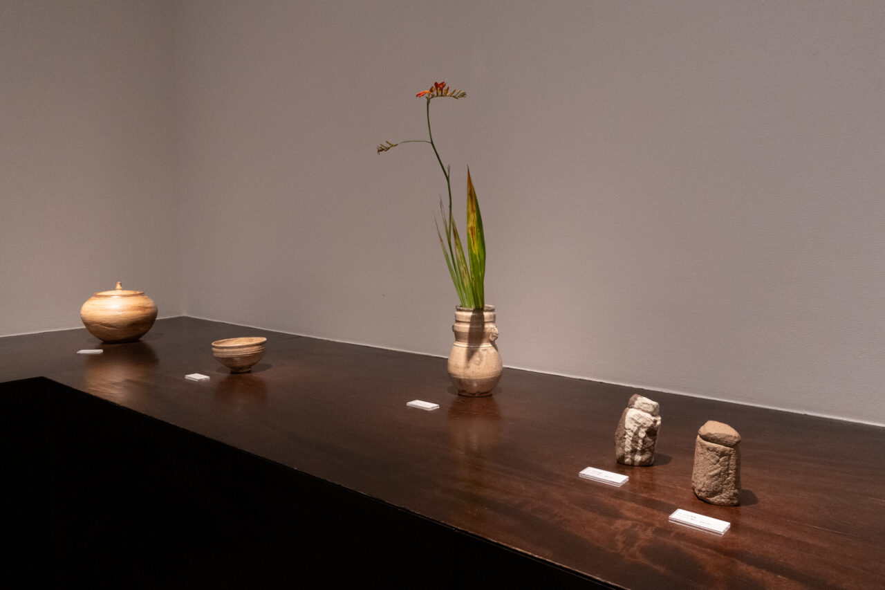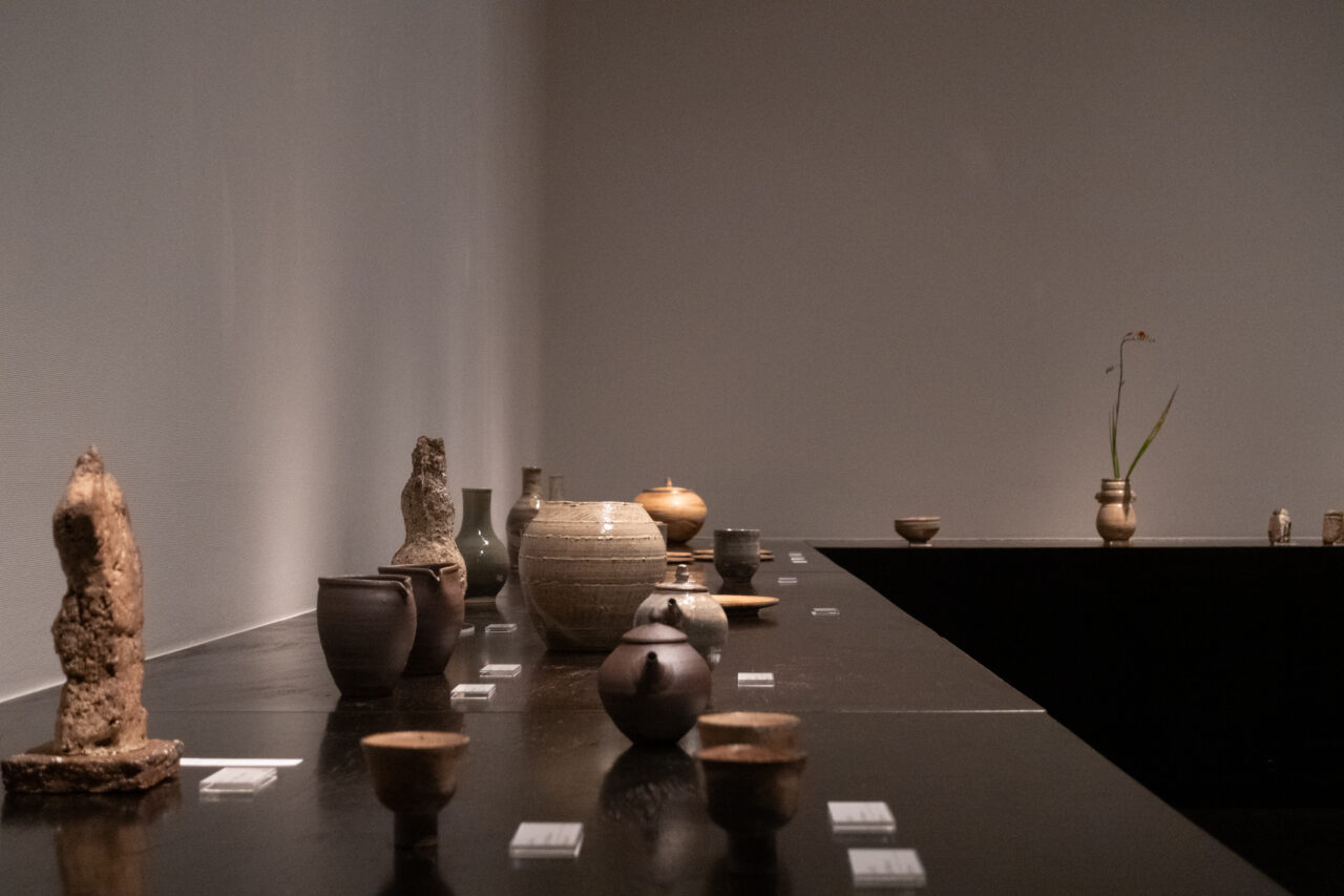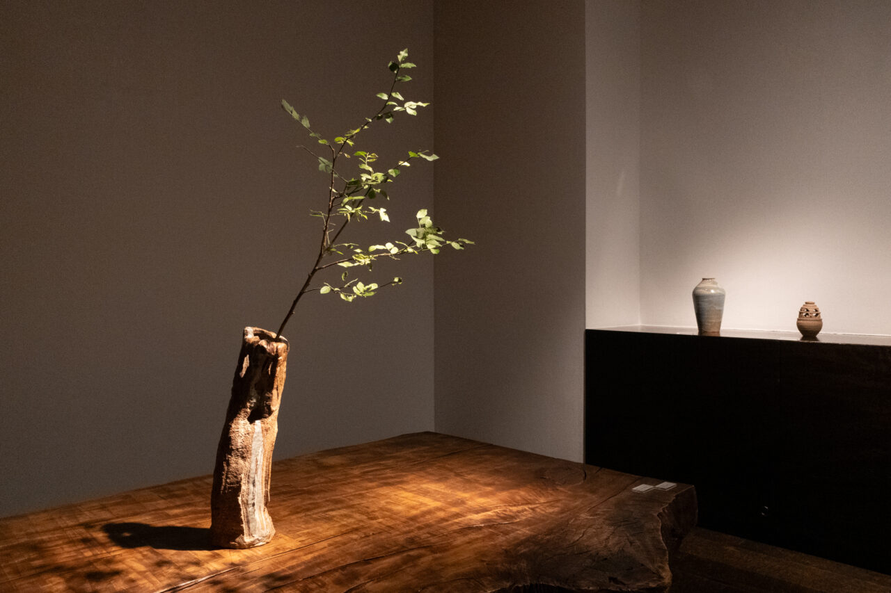 『萩焼 坂倉正紘 展』展覧会レポート 2023.10.2 東京・新宿の柿傳ギャラリーにて、2020年の初個展から約3年ぶりとなる、陶芸家・坂倉正紘さんの待望の個展が開催された。坂倉さんは山口県長門市の歴史ある窯元「坂倉新兵衛窯」の後嗣。深川萩の伝統を重んじ、素材と真摯に向き合いながら、東京藝術大学彫刻科で培った造形感覚を存分に発揮し、伝統と個性が見事に溶け合う作品を制作している、現在注目度の高い陶芸家の一人である。本展では、最新作を含む約120点を展覧した。 「前回の初個展時は、萩の伝統から少し離れ、独自のスタイルを模索していた時期でしたので、展覧会を作り上げていくにあたってとても試行錯誤したことを覚えています。今回は、そんな自分自身のスタイルがブラッシュアップされてきた中での展覧会となり、自信を持って臨めました」と坂倉さん。今回、特に人々を惹きつけたのはギャラリー奥の間で展覧されていた《花器》だ。山中にて、雨水や湧水が岩肌、木肌を静かに伝い落ちる風情に感応して制作しているというシリーズの一つで、折からの酷暑の中、透かし彫りの入った意匠の涼し気な佇まいが、立ち寄った人々にひとときのやすらぎを与えていた。 透かし彫りの入った《花器》 山中に静かに佇む古木のような、深みのある味わい 落ちる影も美しい 《於福土酒盃》 新たに見つけた土を用いて制作した 新作の茶碗や酒器にはいずれも土の豊かな表情がよく表れている。坂倉さんは、萩焼に伝統的に使われてきた土のほか、身の回りの山々で自ら採掘した土も用いて作陶を行なっている。今回は、新たに発見した土を使用した酒器も出品された。茶褐色から黒色を呈する、ゴツゴツとした光沢ある仕上がりは、「好みがはっきりと分かれる質感」なのだそうだ。土の個性を引き出すことへの情熱は、初個展時から一貫して変わらない。 花器やオブジェでは、土や釉の肌感を大事にしながらも、より造形面で印象深い作品が多い。そうは言っても、奇を衒った印象はなく、絶妙なさじ加減で構成された有機的な形状が観る者の心をくすぐる。《Piece》は、焼成後の作品を柿渋と番茶に浸すことで、経年変化の味わいを作り出しているオブジェ作品。「萩の七化け」と言われるように、茶陶の世界では広く知られる、使っていくうちに変化する景色に美を見出す価値観をオブジェにも引用した形だ。 《Piece》 経年変化の色合いと独特の造形が柔らかな趣を演出する 《掛花入》 初個展以降、食器のみの展覧会や茶器のみの展覧会など、さまざまなテーマの展覧会にチャレンジしてきた坂倉さん。各フィールドに取り組んできた道のりを顧みれば、今後もより一層自らの作品を磨き、それぞれを突き詰め発展させていきたいという思いが生まれたという。萩の若き旗手のこれからの動向から目が離せない。 SHARE WITH KOGEI STANDARD 編集部 KOGEI STANDARDの編集部。作り手、ギャラリスト、キュレーター、産地のコーディネーターなど、日本の現代工芸に関する幅広い情報網を持ち、日々、取材・編集・情報発信を行なっている。 www.kogeistandard.com