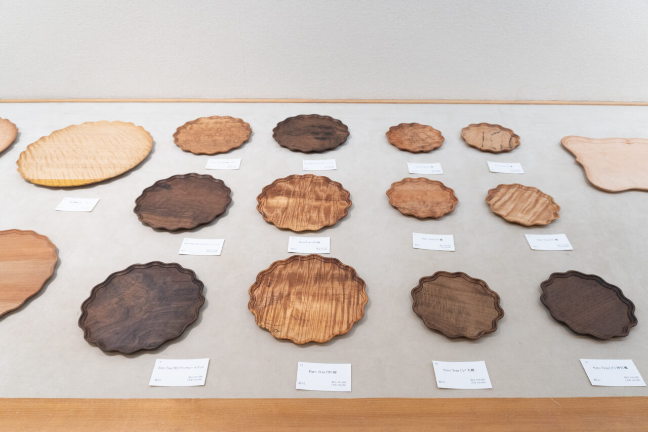 佃さんは「陶芸の場合、作品をいったん窯に預けるが、木工の場合、木という材料が作家の手を離れずに最後までつきまとうので、どういう木を使うのかが重要になってくる」と語る。木に知悉し、杢目の美しさを引き出すためにこの上なく高い技術力を磨き続ける佃さんの作品は、一つ一つが木々の豊かな生を物語っているようだった。